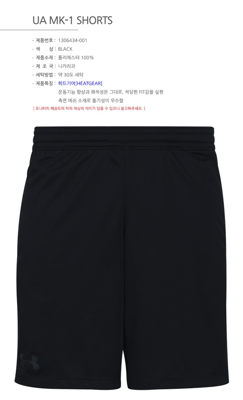 언더아머 남성 MK1 히트기어 쇼츠 트레이닝 반바지 1306434-001