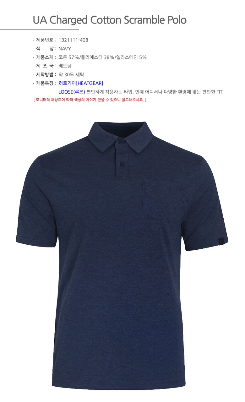 언더아머 남성 HG 차지드 코튼 스크램블 폴로 카라 반팔 티셔츠 1321111-408