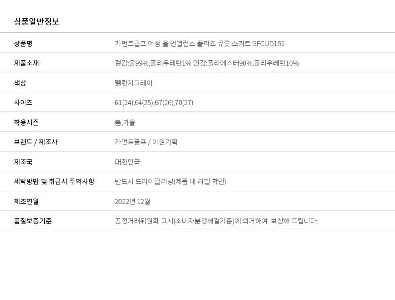 가먼트골프 여성 울 언밸런스 플리츠 큐롯 스커트 GFCUD152