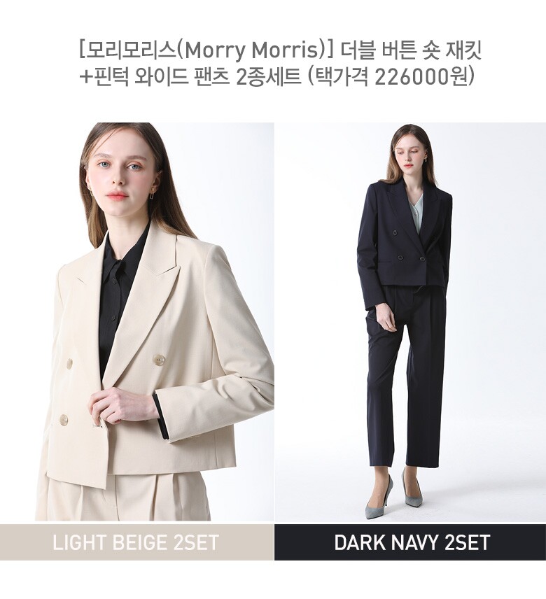 2SET [모리모리스(Morry Morris)] 더블 버튼 숏 재킷+핀턱 와이드 팬츠 2종세트 (택가격 226000원)