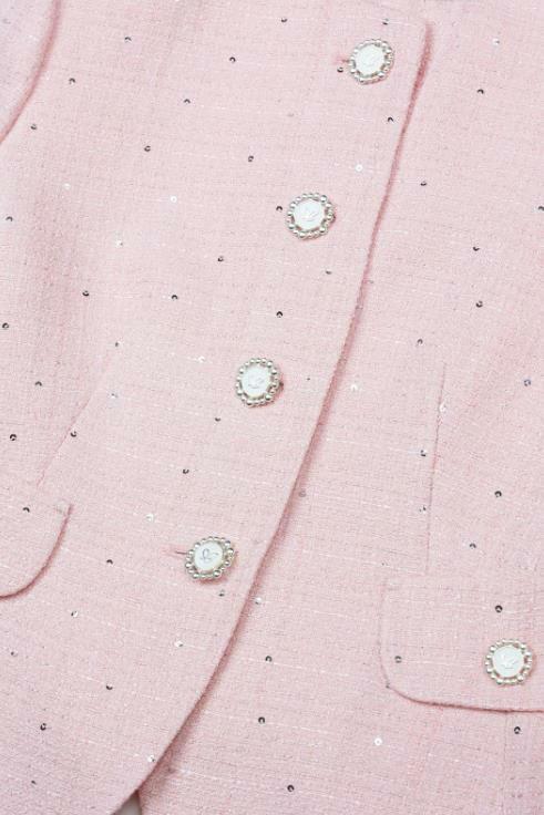 조직감이 느껴지는 트위드 소재와 금속 장식 단추로 포인트를 주어 디테일을 더하였습니다.