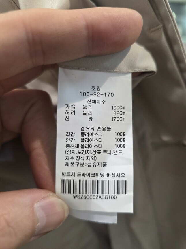 1. 제품 소재 (섬유의 조성 또는 혼용률을 백분율로 표시, 기능성인 경우 성적서 또는 허가서) 겉감 : 폴리에스터 100% 안감 : 폴리에스터 100% (심지,보강재,상표