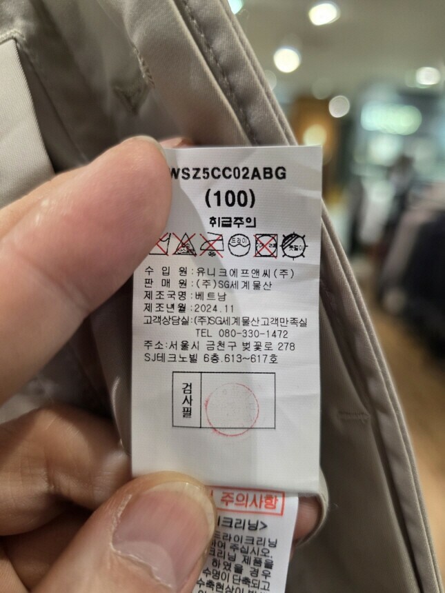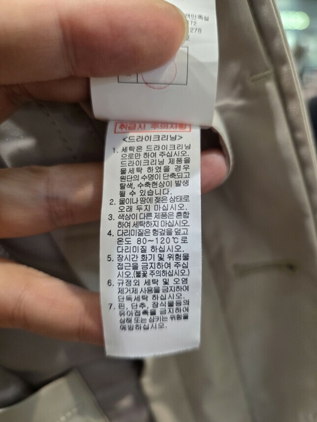 6. 세탁방법 및 취급시 주의사항 드라이크리닝