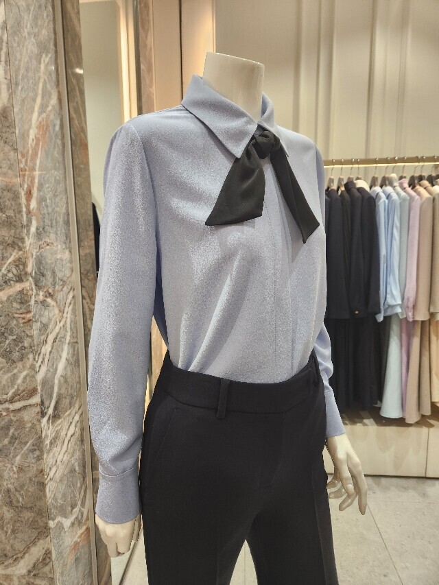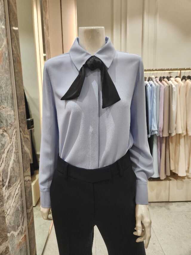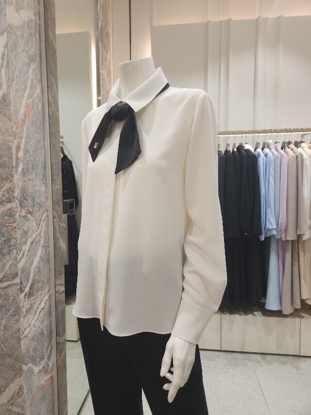 "스탠다드핏 타이 블라우스"