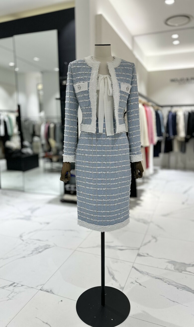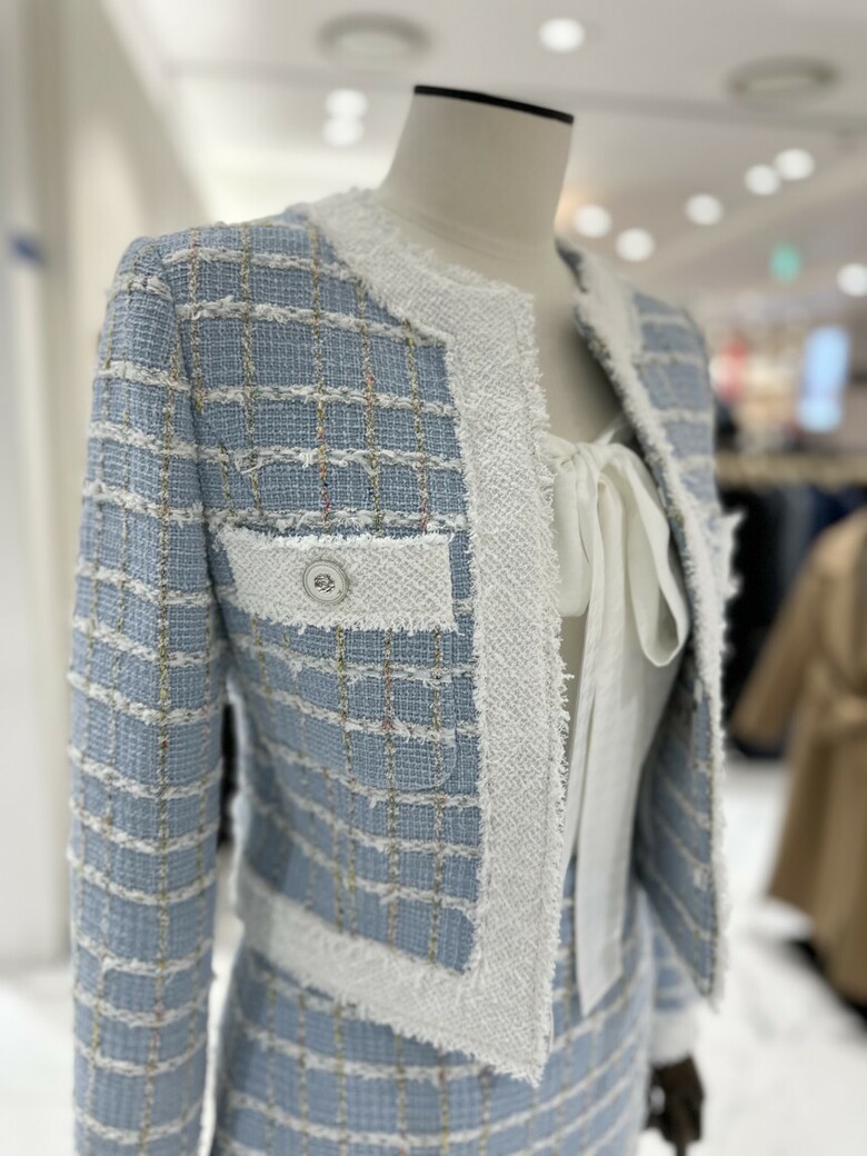 모조에스핀 배색 트위드 재킷 J242MSF111