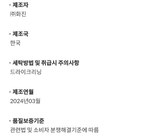 | 6. 세탁방법 및 취급시 주의사항 | 상품상세참조 |