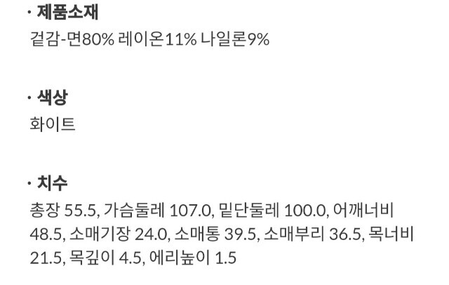 | 1. 제품 소재 (섬유의 조성 또는 혼용률을 백분율로 표시, 기능성인 경우 성적서 또는 허가서) | 상품상세참조 |