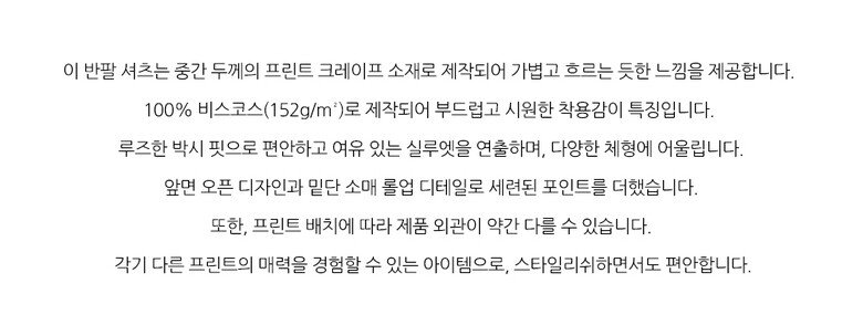 | 1. 제품 소재 (섬유의 조성 또는 혼용률을 백분율로 표시, 기능성인 경우 성적서 또는 허가서) | 100% 레이온 |