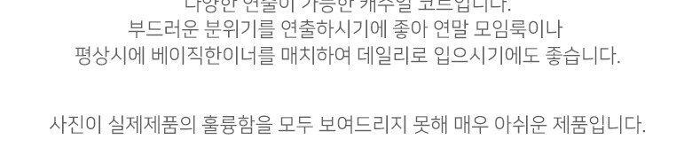 1. 제품 소재 (섬유의 조성 또는 혼용률을 백분율로 표시, 기능성인 경우 성적서 또는 허가서) | [겉감] 모 93% 캐시미어 7% [안감] 폴리에스터 100% [배색1] 모 50% 폴리에스터 50% [배색2] 모 50% 폴리에스터 50% |