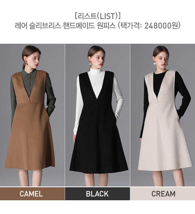 [리스트(LIST)] 레어 슬리브리스 핸드메이드 울원피스 (택가격: 248000원)