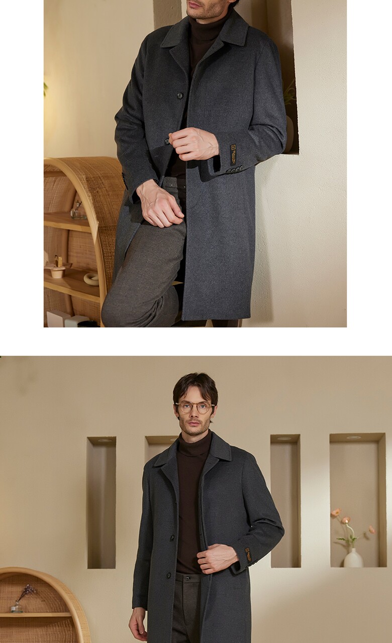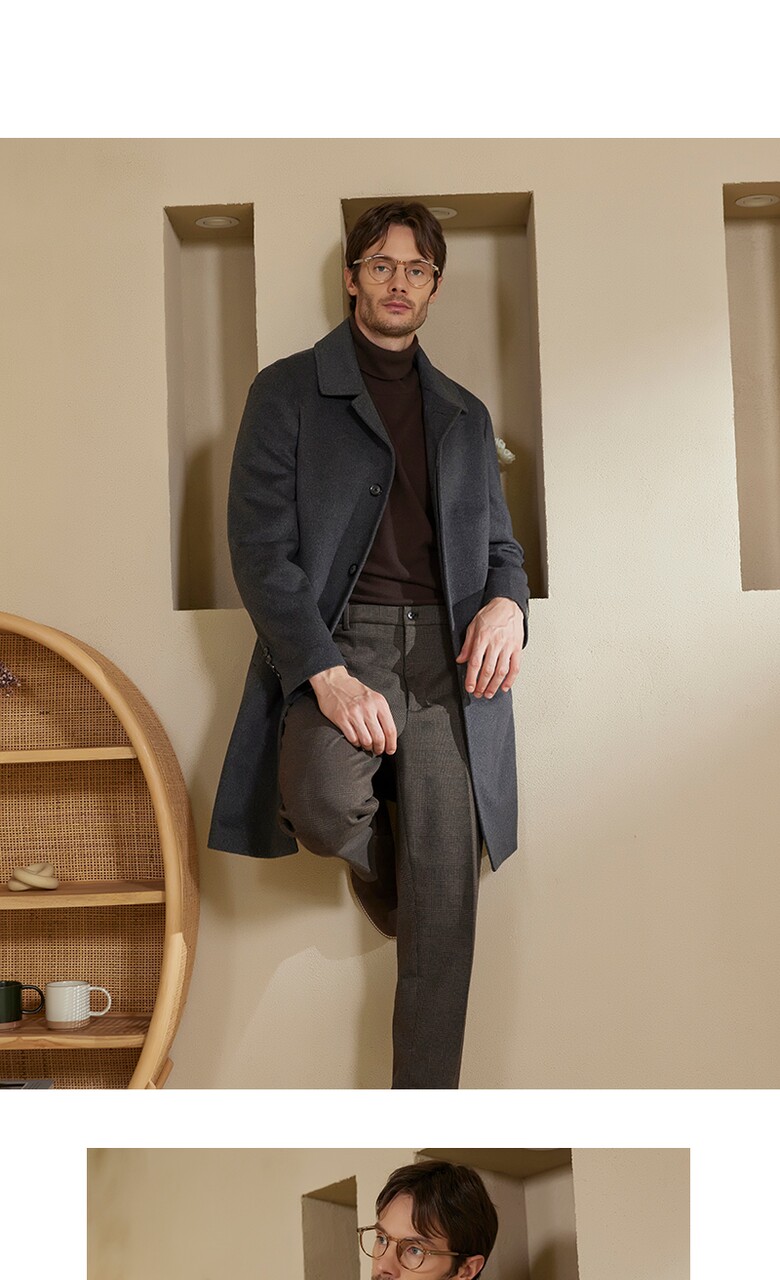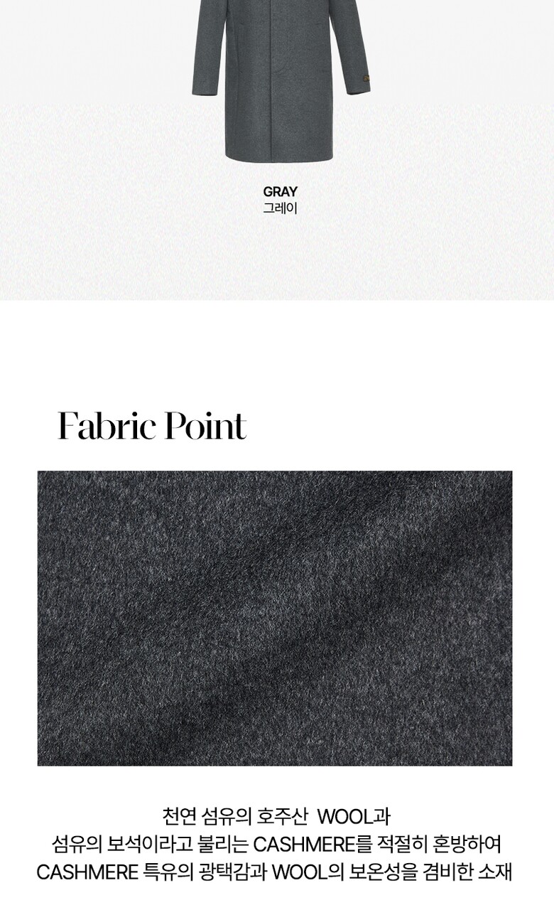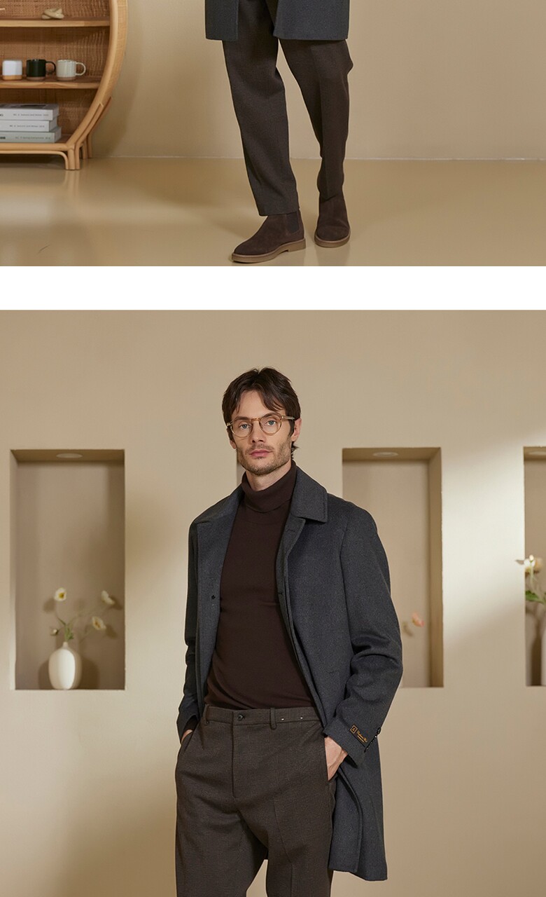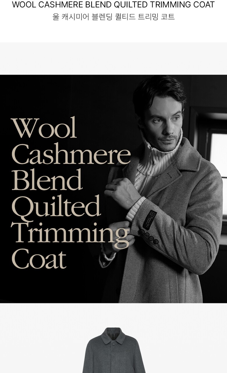 워모 남성 울 캐시미어 블렌딩 퀼티드 트리밍 코트 그레이