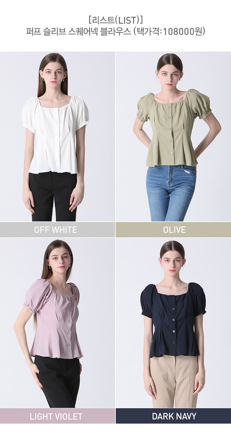 [리스트(LIST)] 퍼프 슬리브 스퀘어넥 블라우스 (택가격: 108000원)