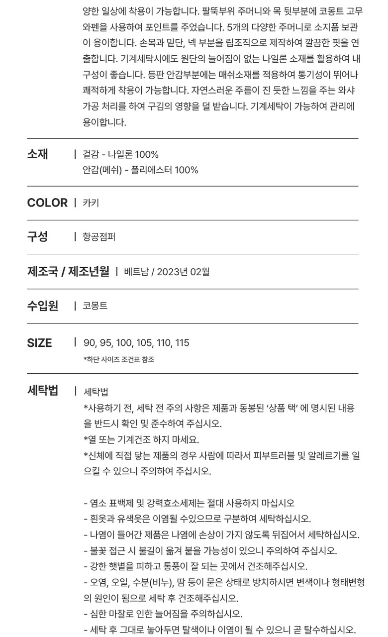 6. 세탁방법 및 취급시 주의사항 | 상세페이지 참조 |