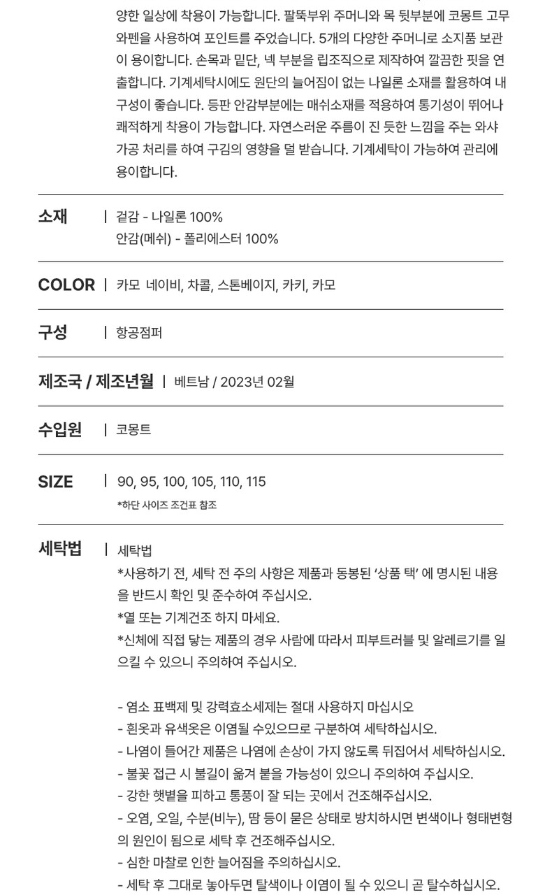6. 세탁방법 및 취급시 주의사항 | 상세페이지 참조 |