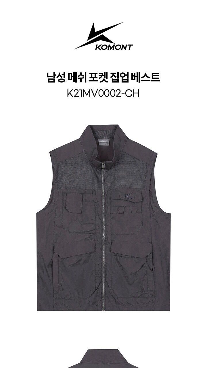 [코몽트] 남성 메쉬 포켓 집업 베스트 차콜