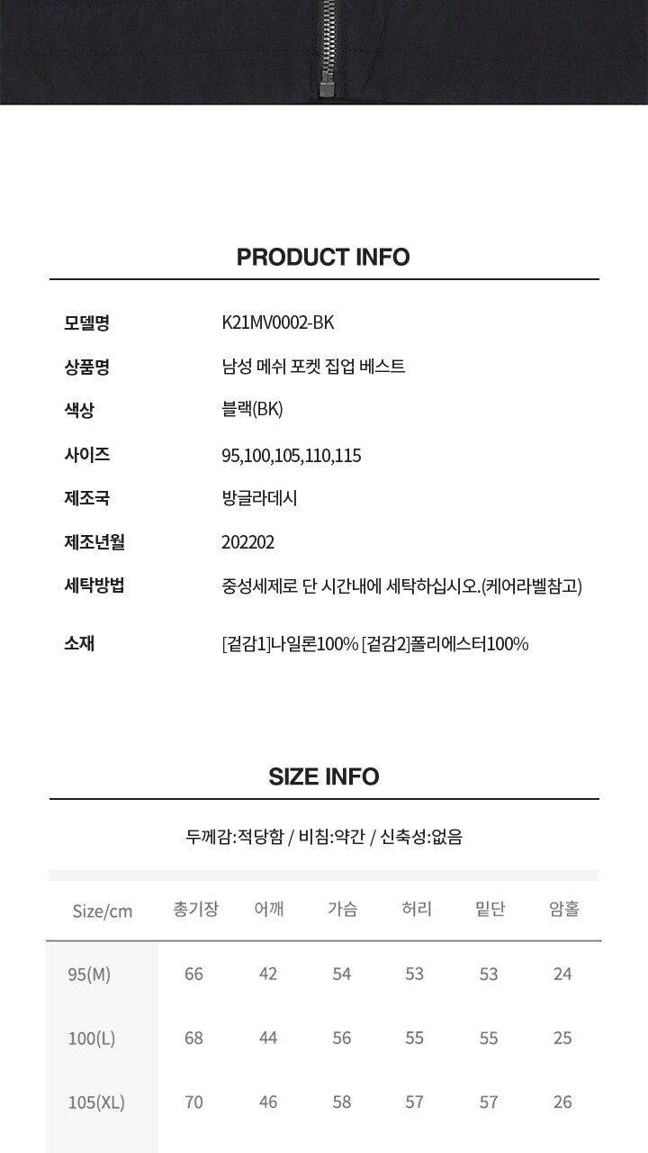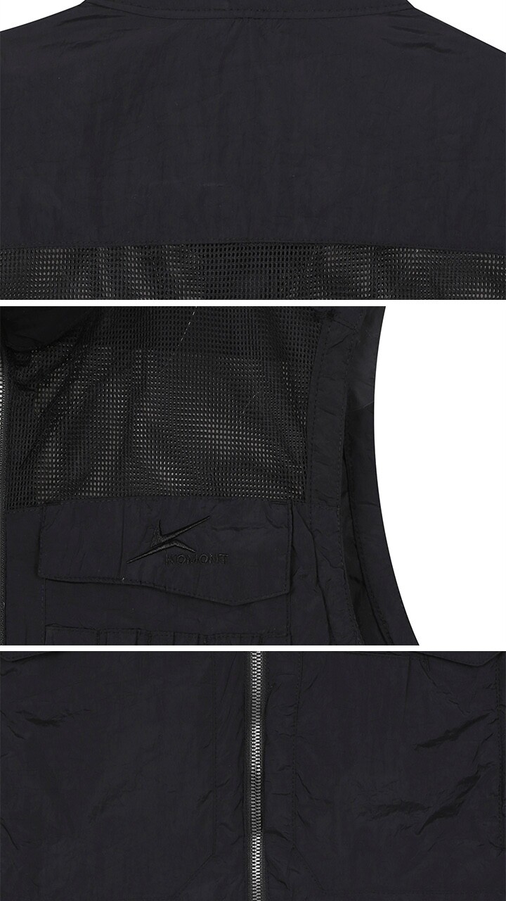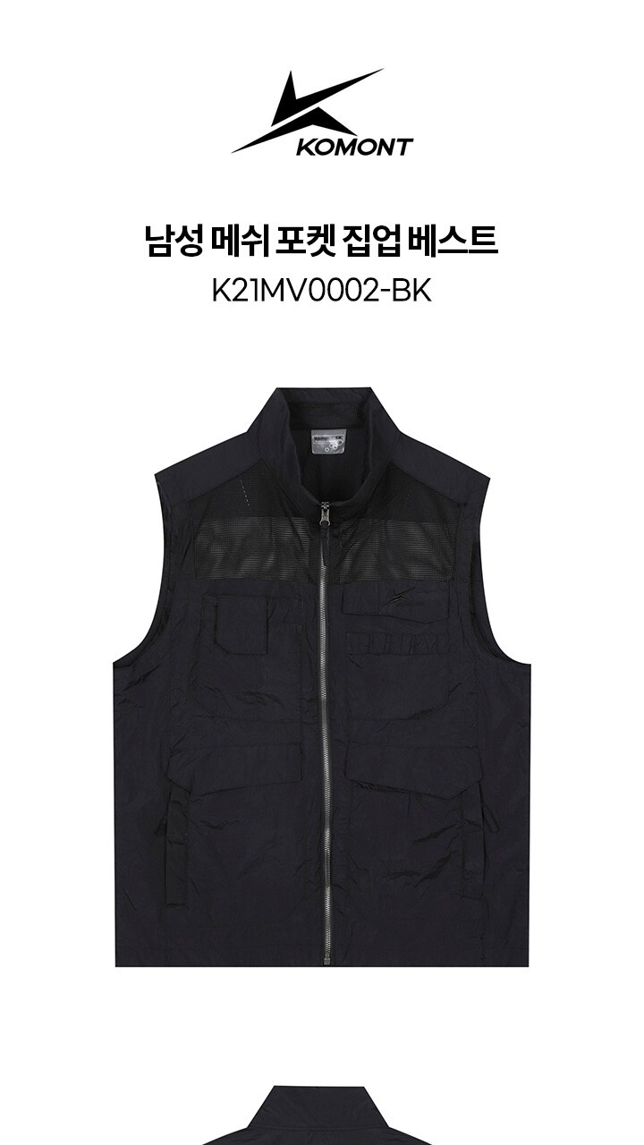 [코몽트] 남성 메쉬 포켓 집업 베스트 블랙