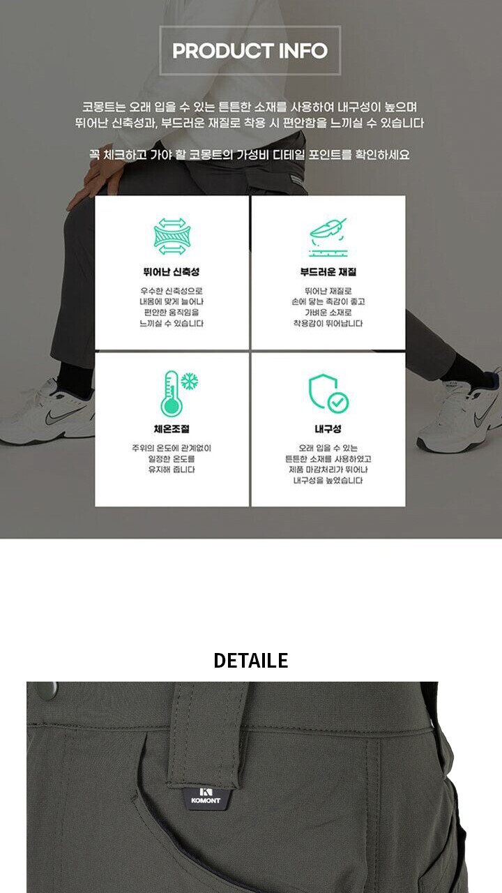 [코몽트] 남성 빅포켓 허리밴딩 카고 팬츠 카키
