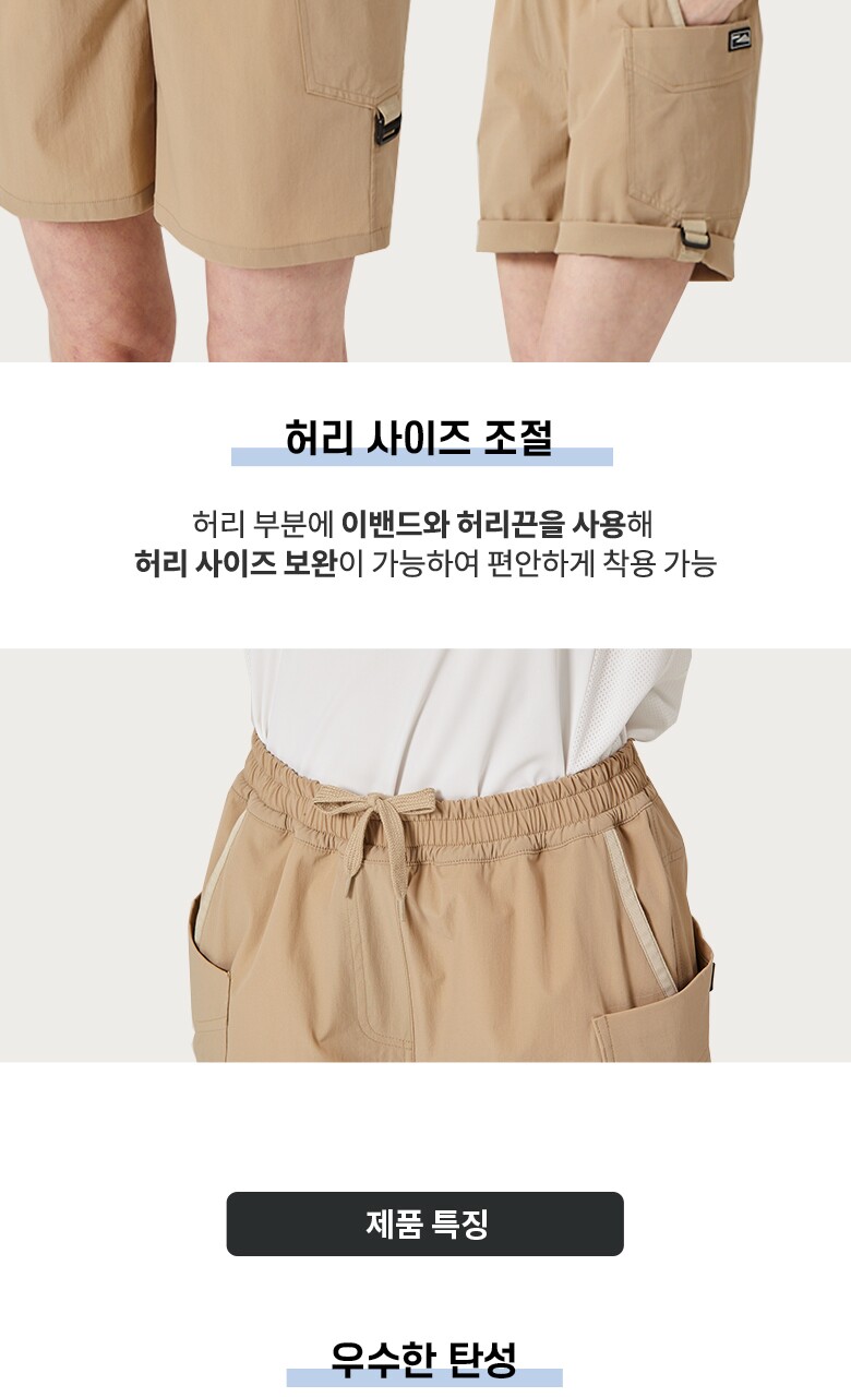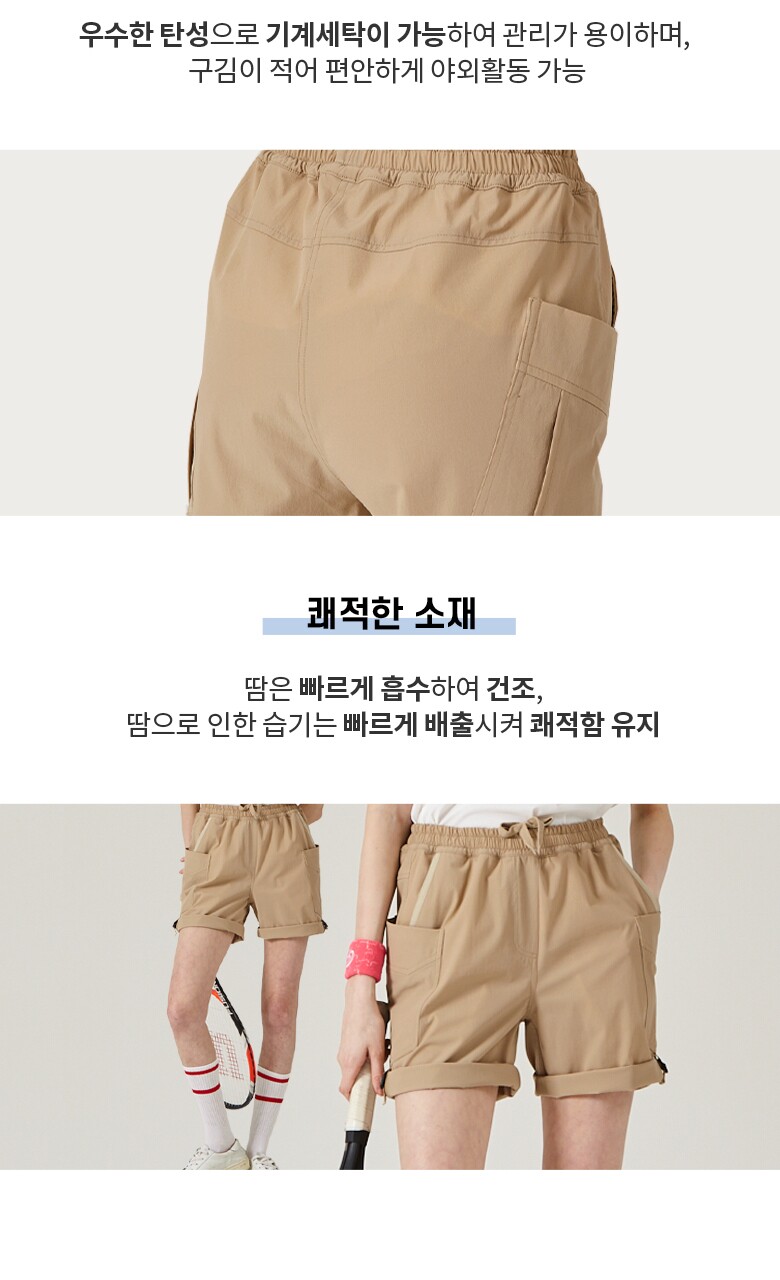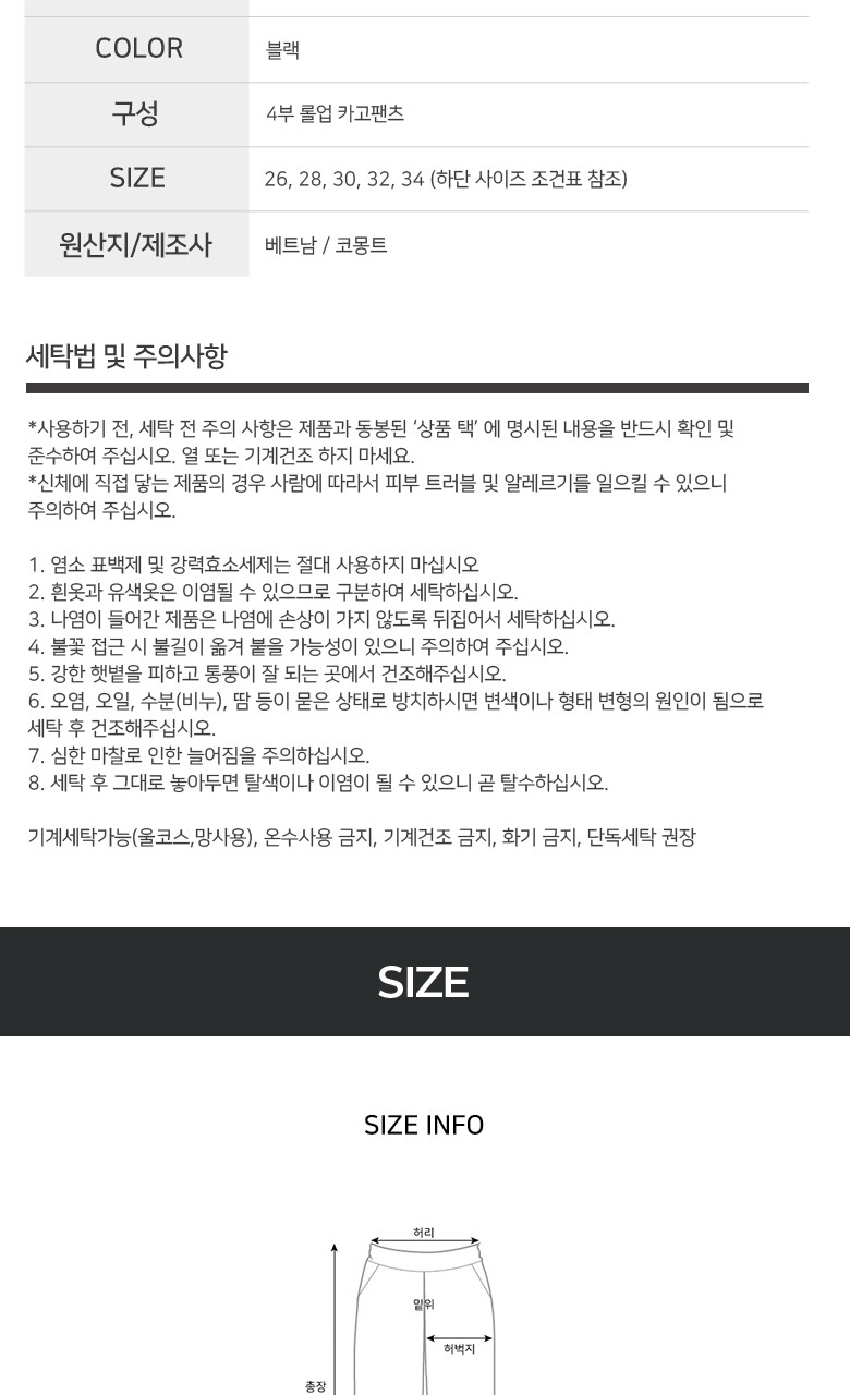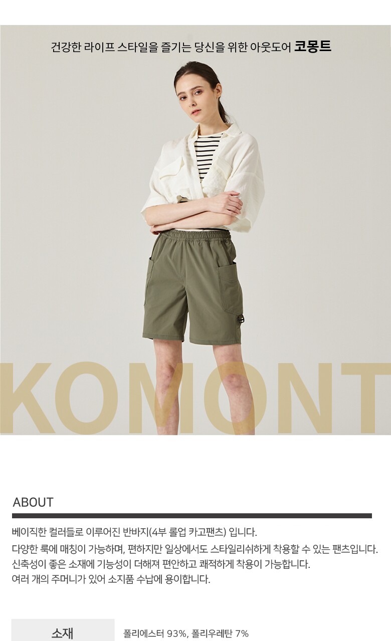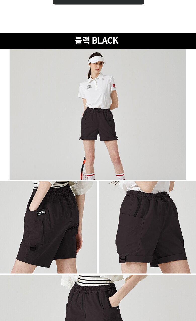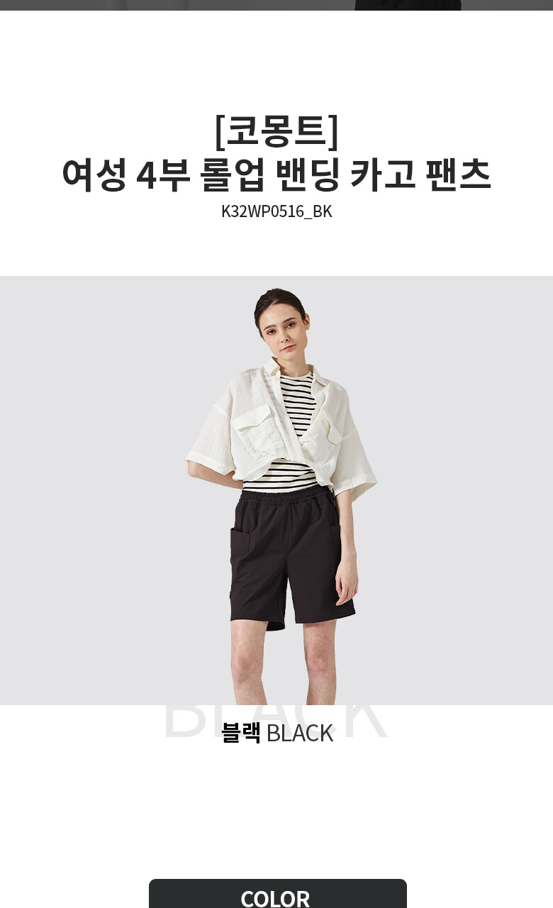 [코몽트] 여성 4부 롤업 밴딩 카고 팬츠 블랙