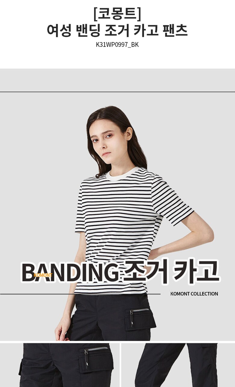 [코몽트] 여성 밴딩 조거 카고 팬츠 블랙