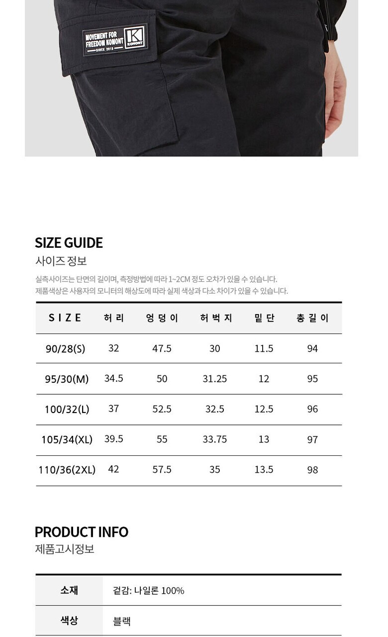 1. 제품 소재 (섬유의 조성 또는 혼용률을 백분율로 표시, 기능성인 경우 성적서 또는 허가서) | 겉감 : 나일론 100% |
