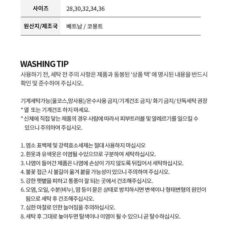6. 세탁방법 및 취급시 주의사항 | 상세페이지 참조 |
