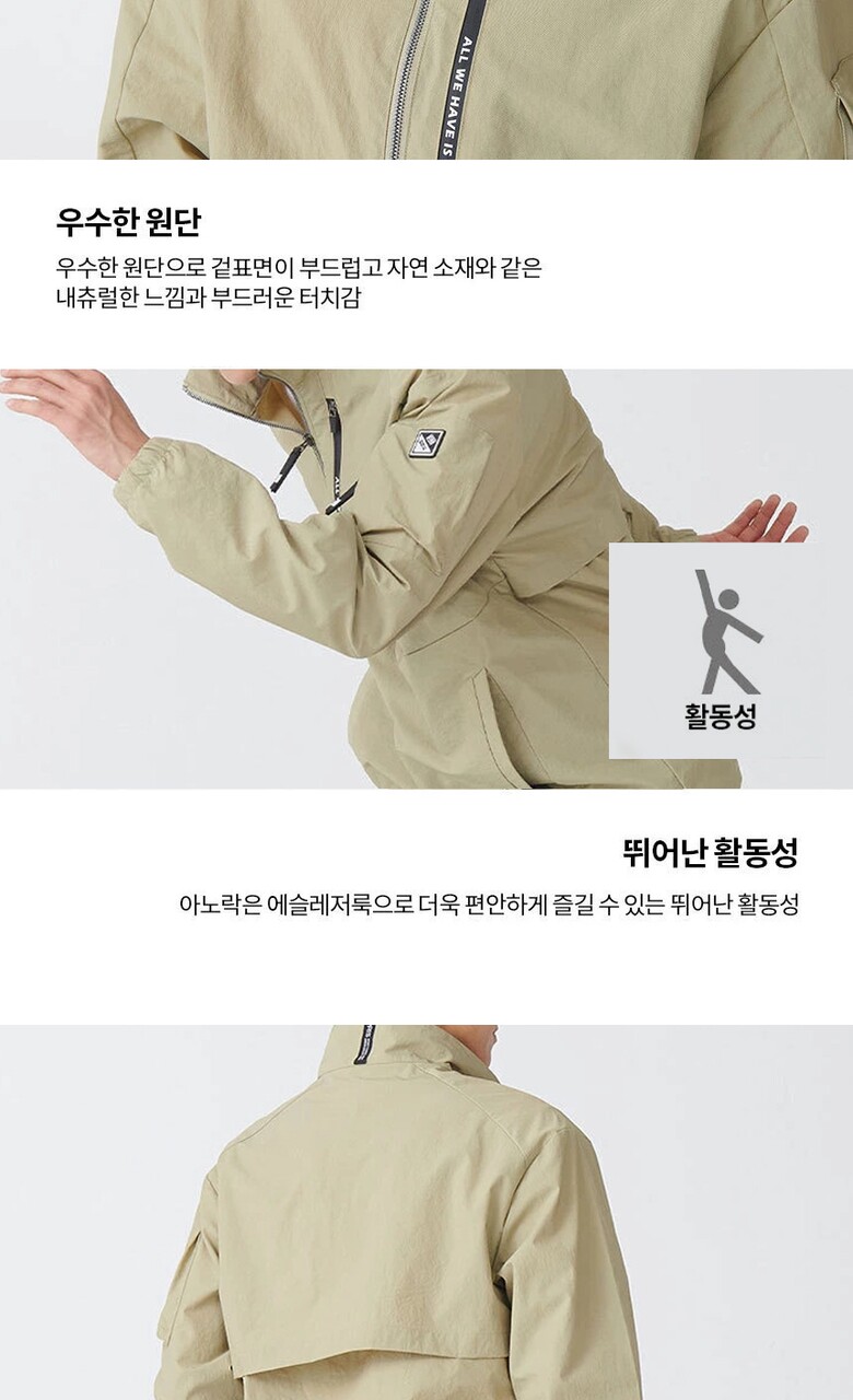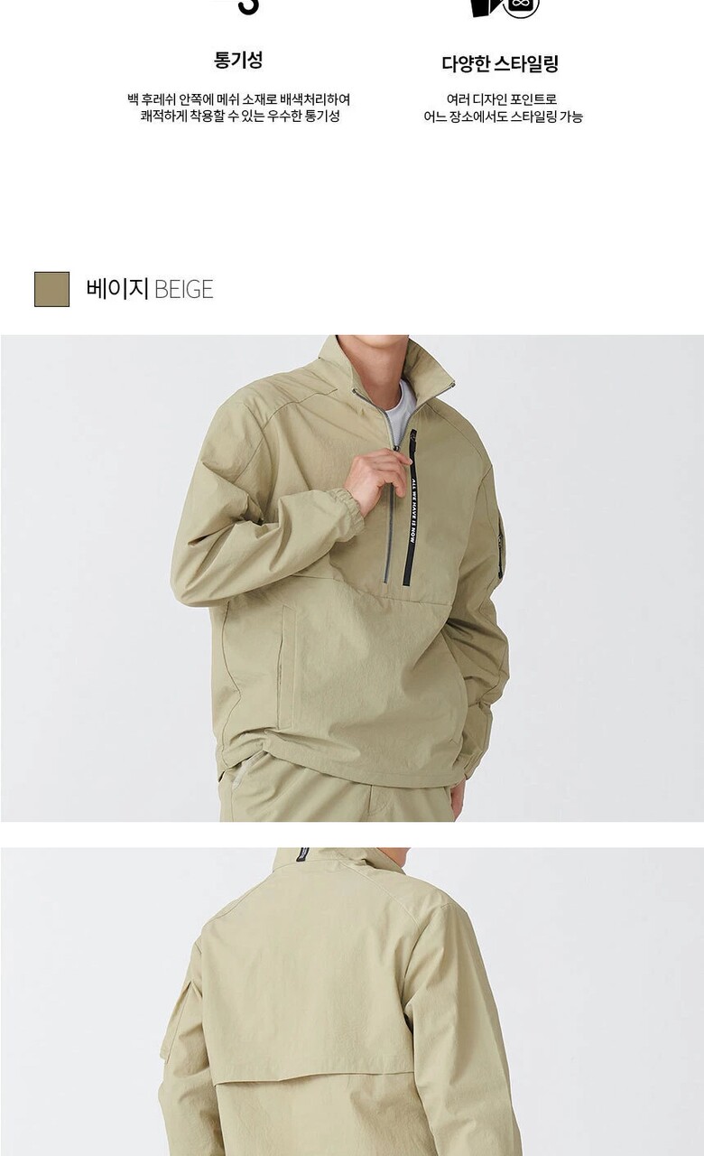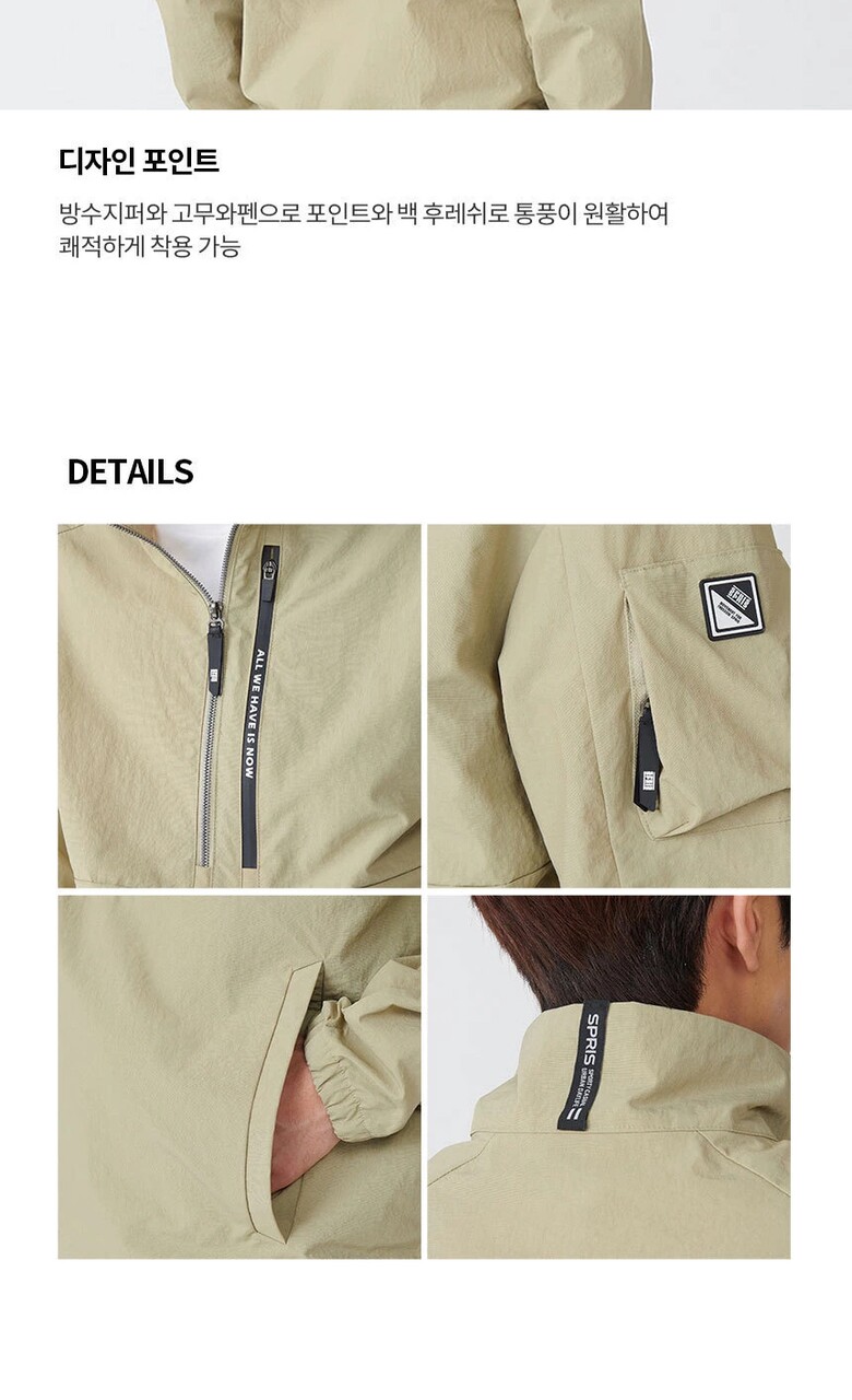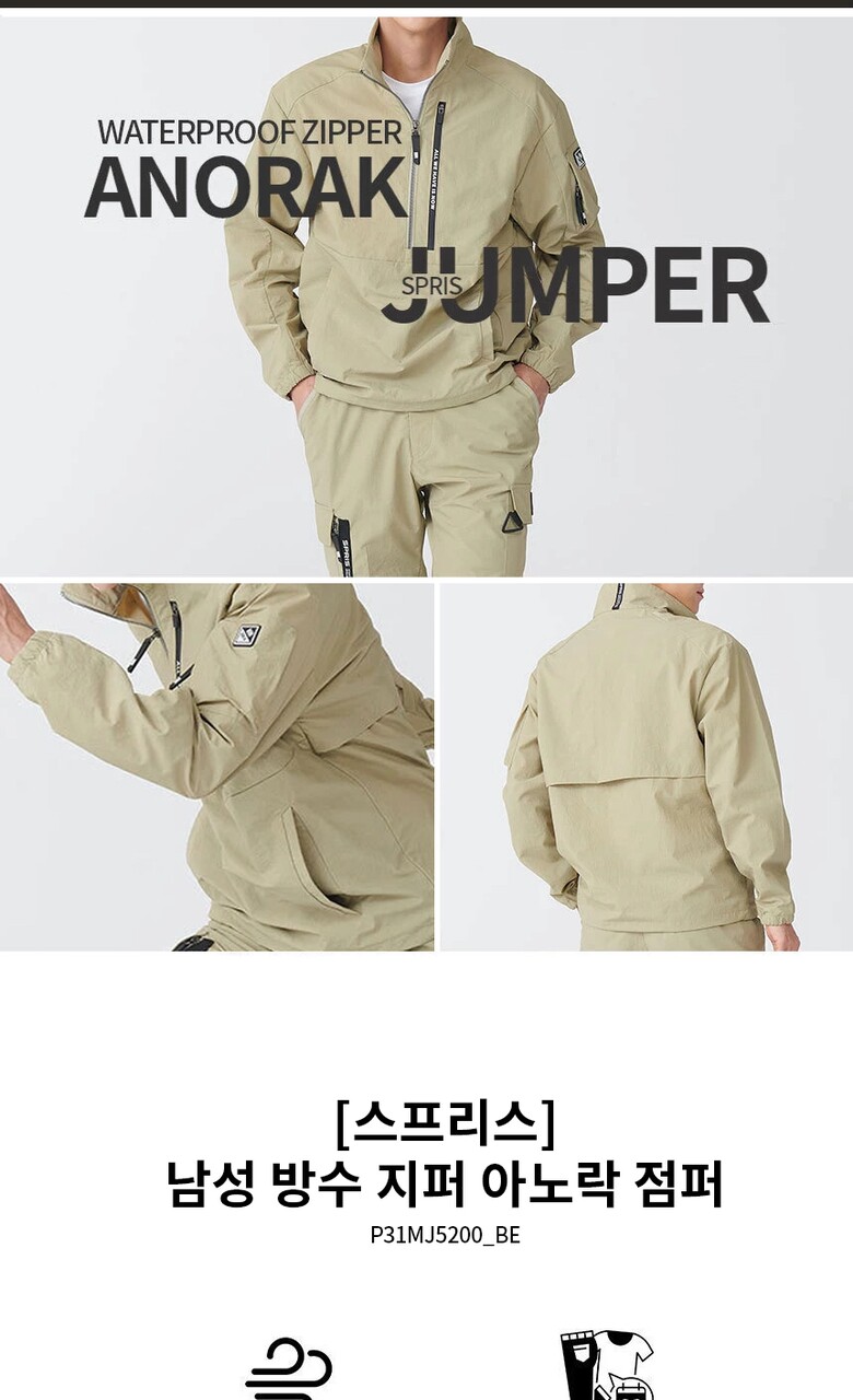 스프리스 남성 방수 지퍼 아노락 점퍼 베이지