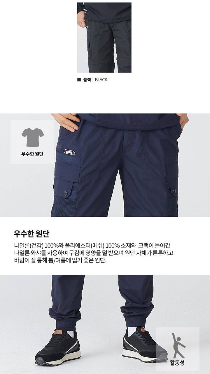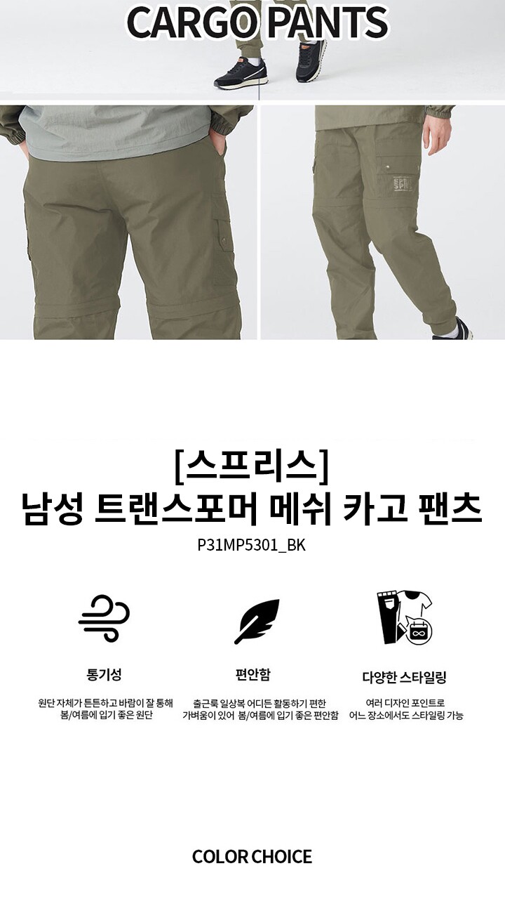 스프리스 남성 트랜스포머 메쉬 카고 팬츠 블랙