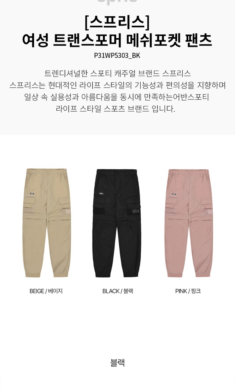 스프리스 여성 트랜스포머 메쉬포켓 팬츠 블랙