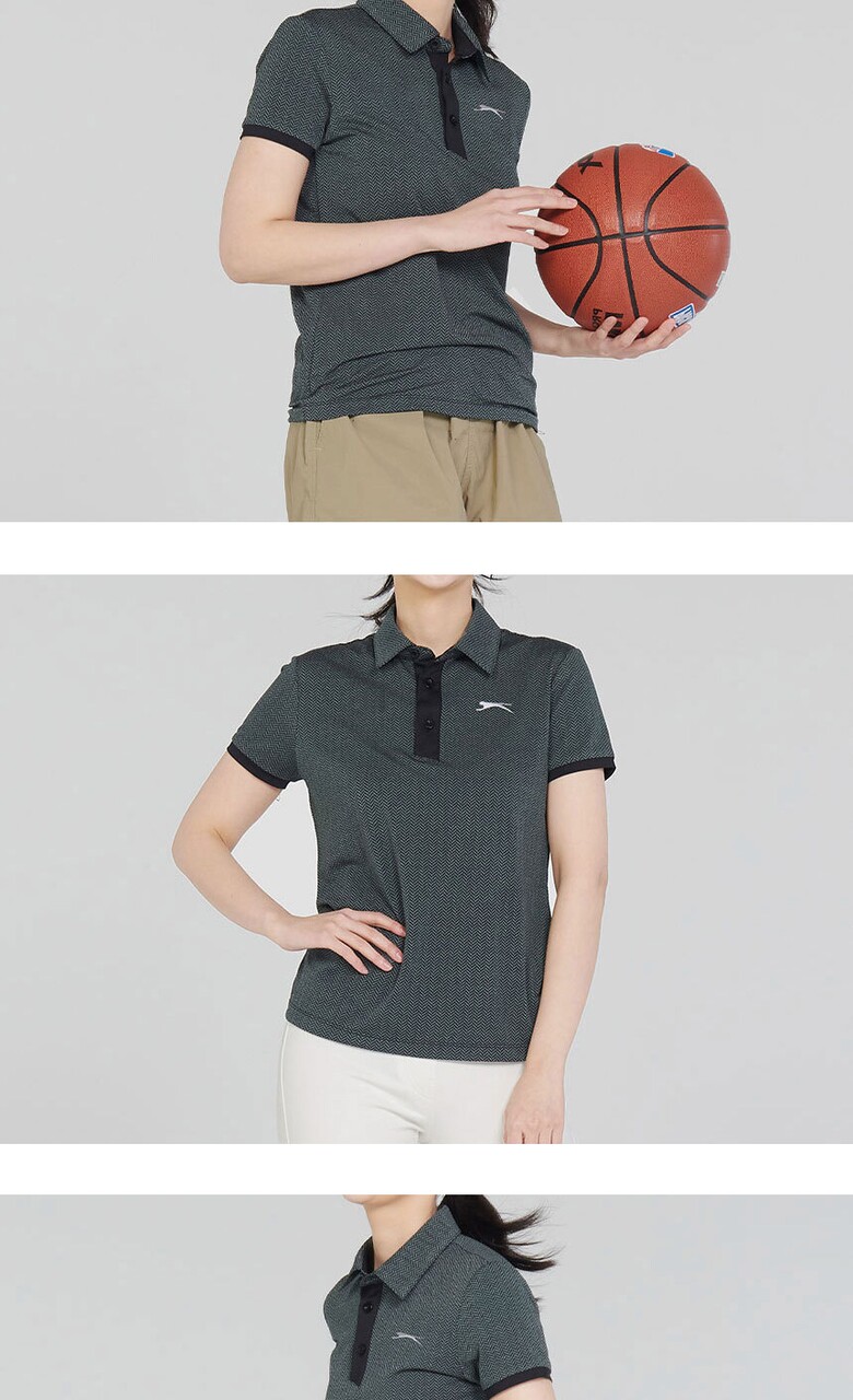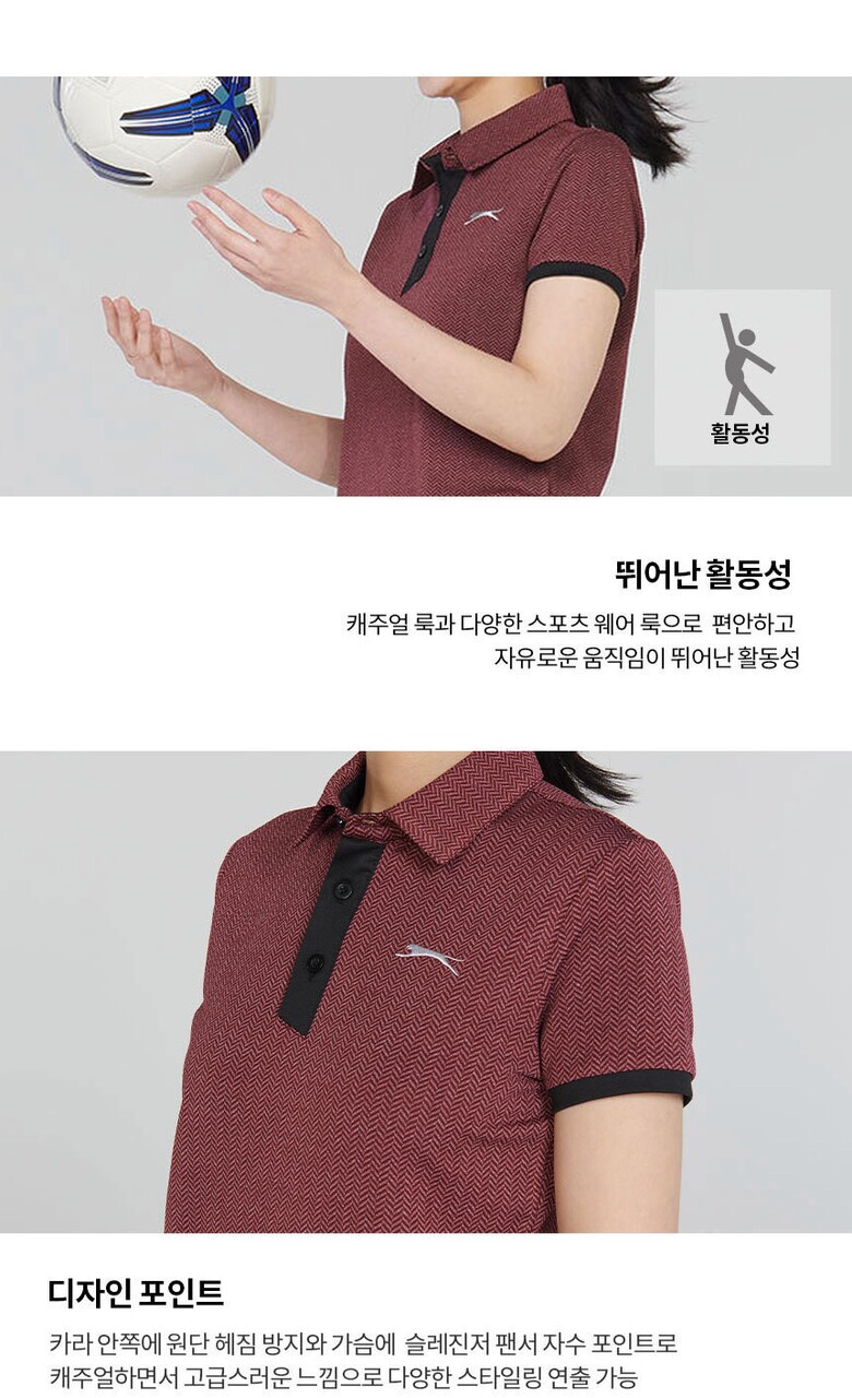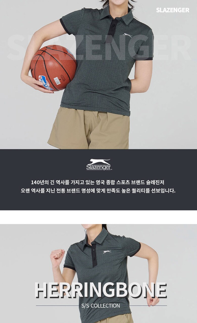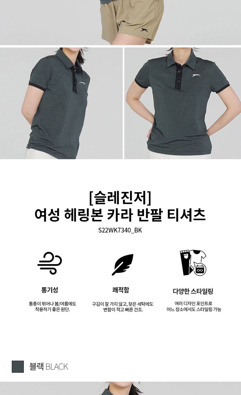 슬레진저 여성 헤링본 카라 반팔 티셔츠 블랙