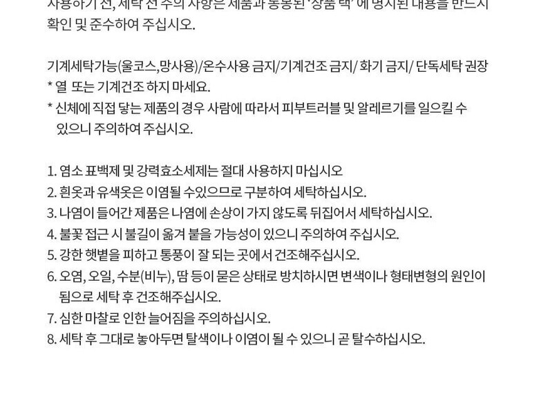 6. 세탁방법 및 취급시 주의사항 | 상세페이지 참조 |