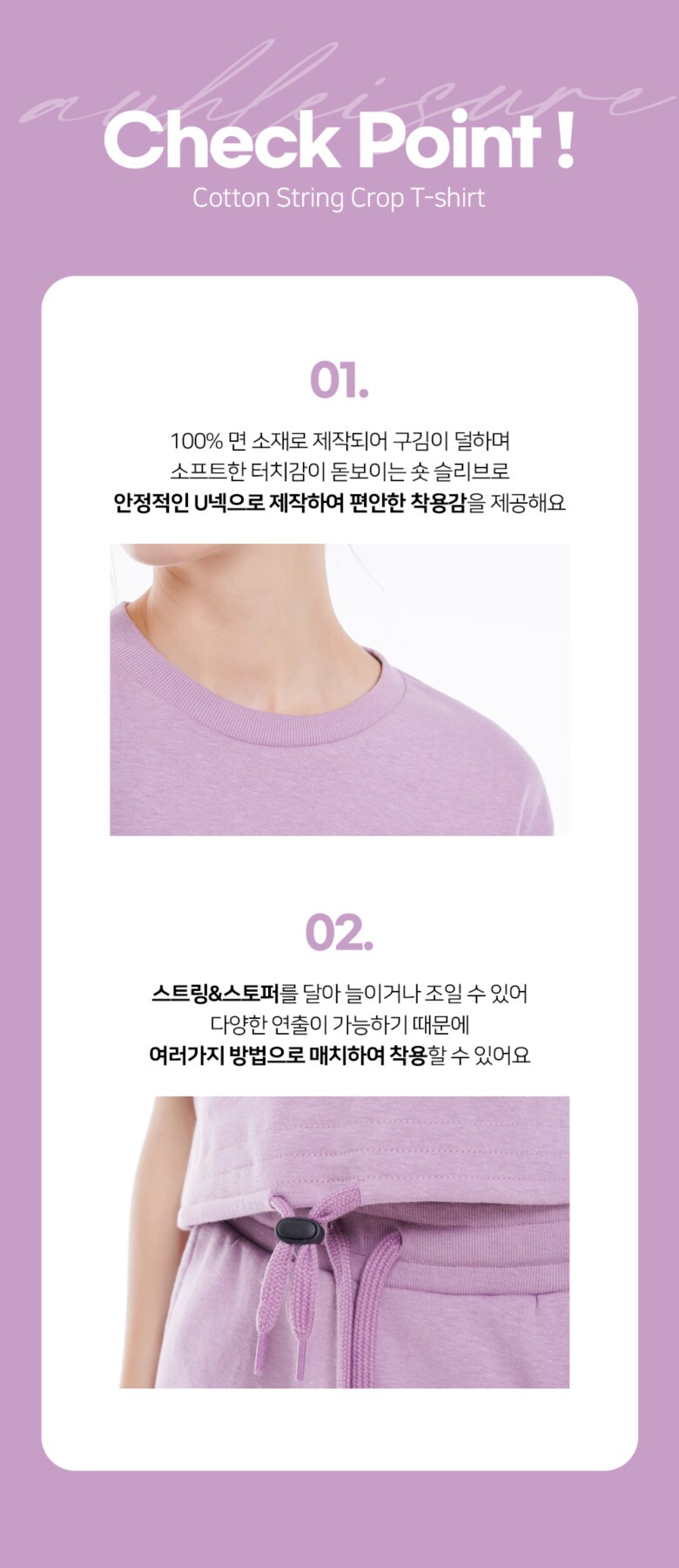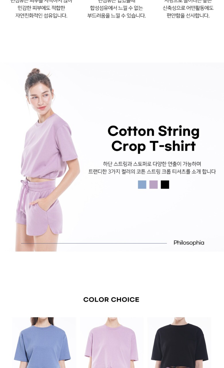 [피트업] 코튼 스트링 크롭티셔츠 K1005 PU