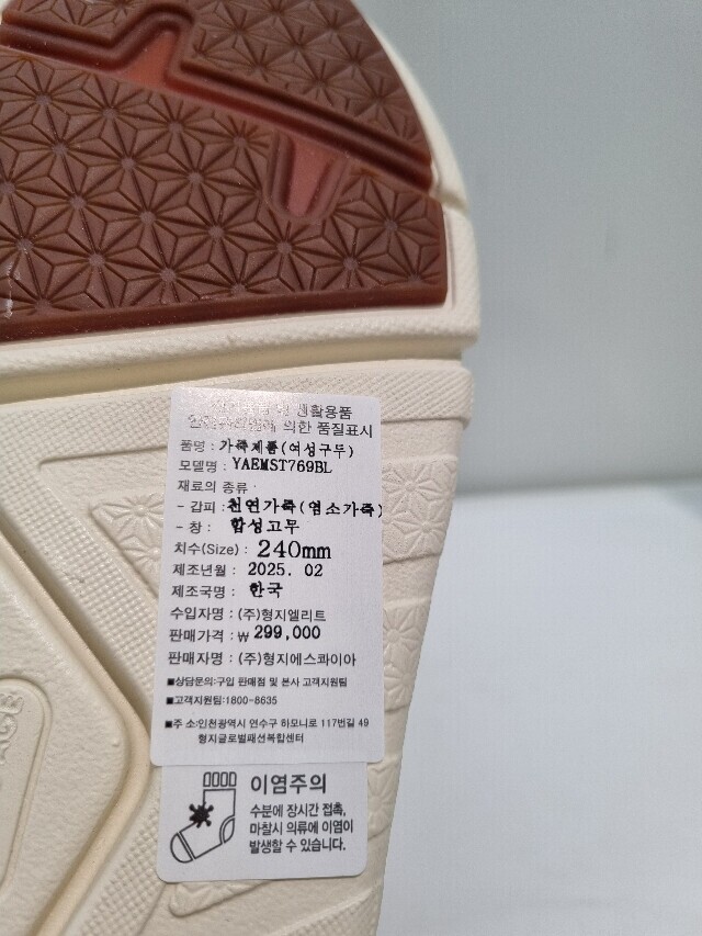 | 1. 제품 소재 (운동화인 경우에는 겉감, 안감을 구분하여 표시) | 염소가죽 |