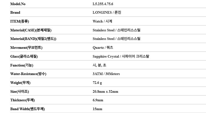 7. 주요 사양 스테인리스스틸 시계 쿼츠