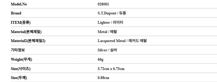 듀퐁 028001 (CA28001ZZ) 슬리미 실버 라이터