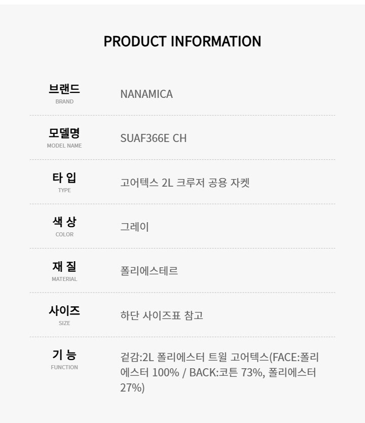 나나미카 SUAF366E CH 고어텍스 2L 크루저 공용 자켓