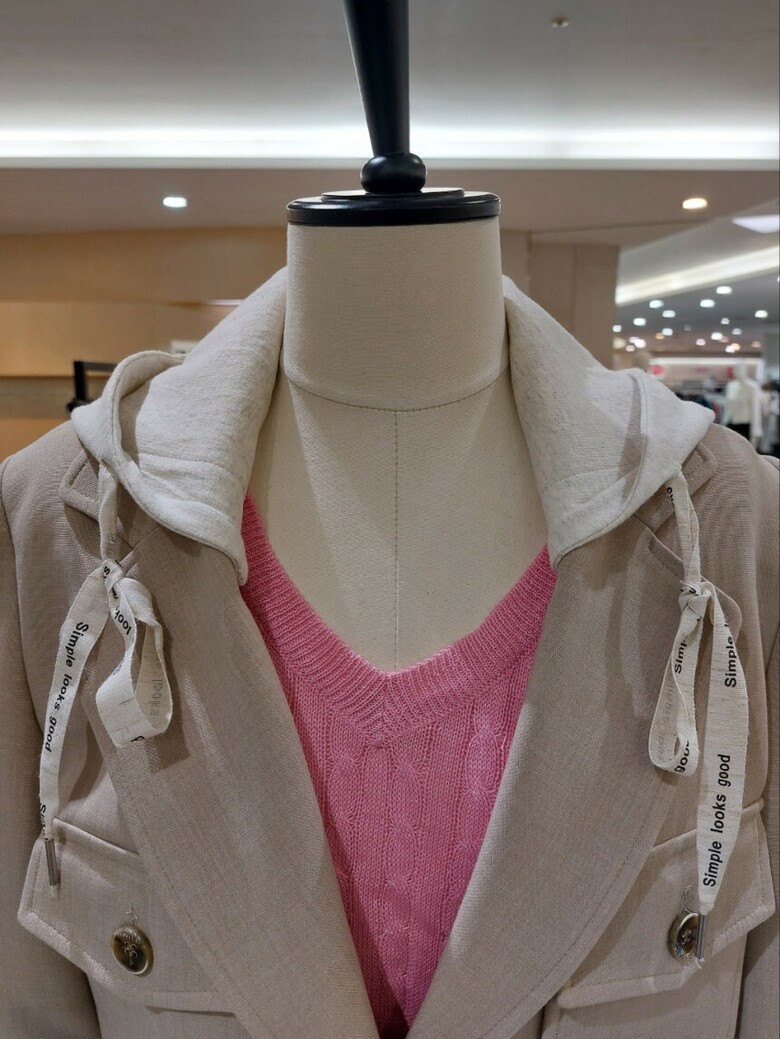 | 1. 제품 소재 (섬유의 조성 또는 혼용률을 백분율로 표시, 기능성인 경우 성적서 또는 허가서) | 겉감:폴리에스테르 78%, 레이온 18%, 스판덱스 4% / 안감:폴리에스테 |