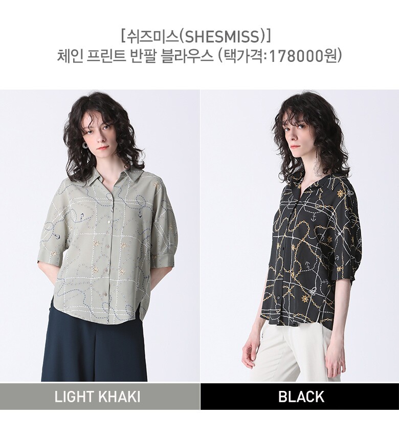 [쉬즈미스(SHESMISS)] 체인 프린트 반팔 블라우스 (택가격: 178000원)