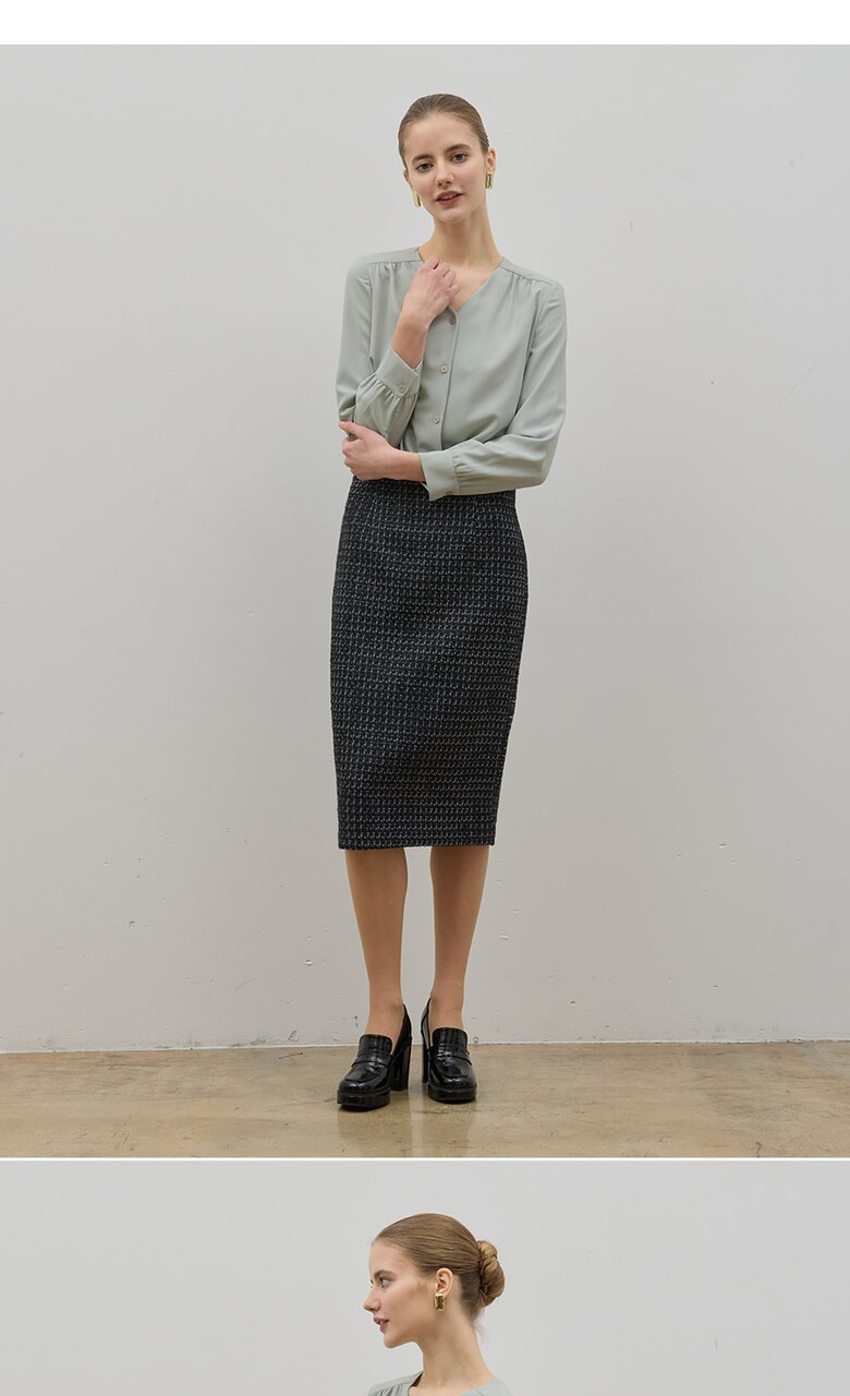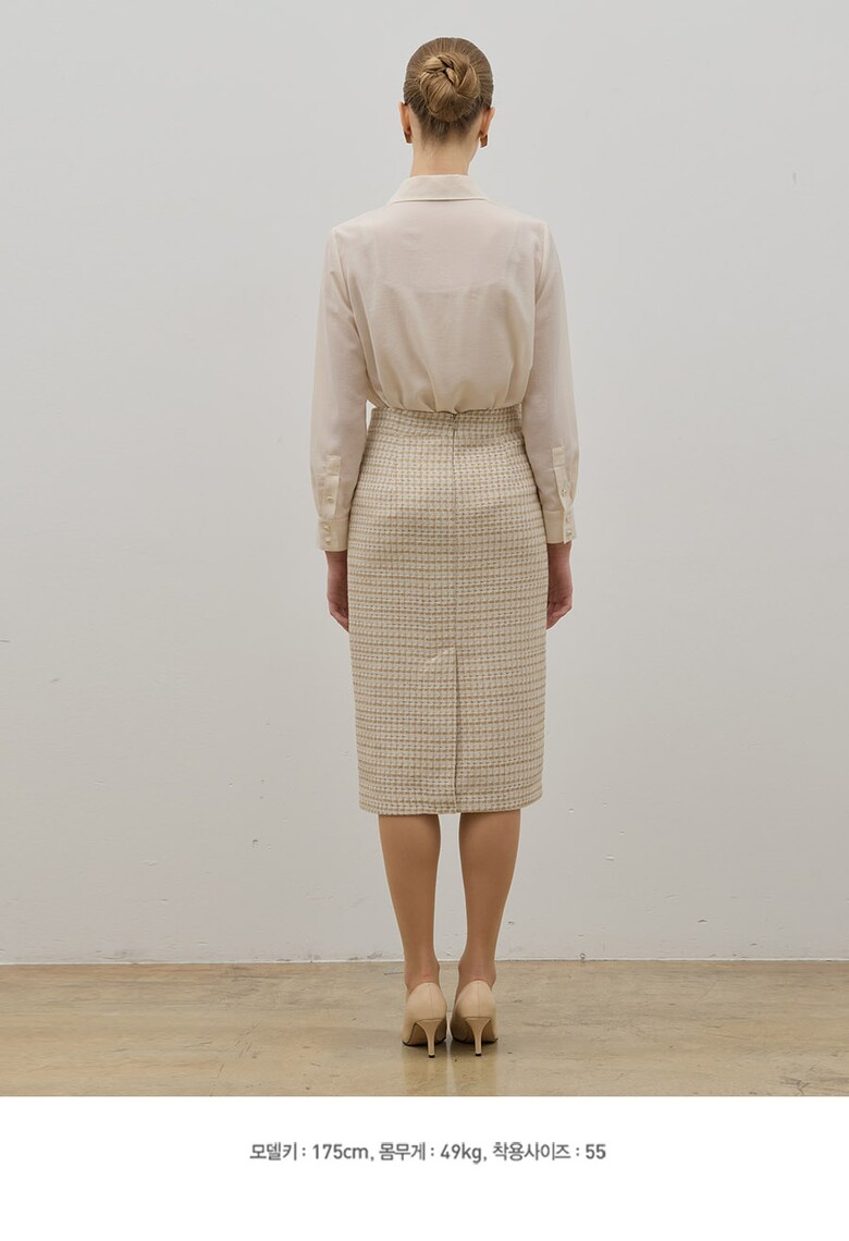 독특한 텍스쳐가 돋보이는 패턴으로 세련된 룩을 완성하며, 다양한 스타일링이 가능한 스커트입니다. 브랜드만의 고급원단으로 우수한 착용감을 선사합니다. 깔끔한 실루엣과 편안한 착용감으로 데일리 룩부터 오피스 룩까지 폭넓게 활용할 수 있는 아이템입니다.