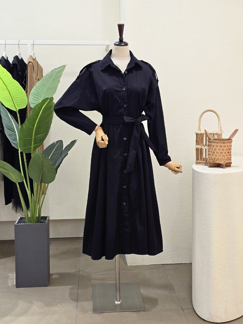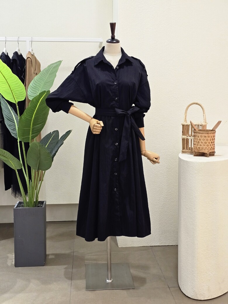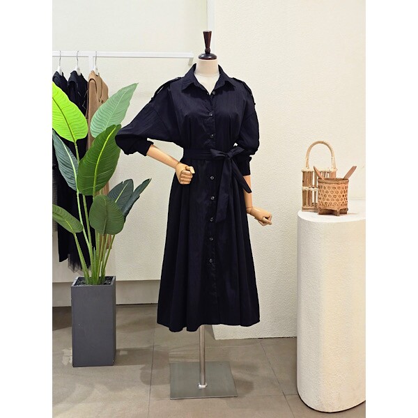 25FS5B9OP5097_어깨 견장 셔츠형 벨티드 원피스