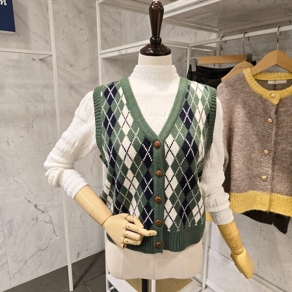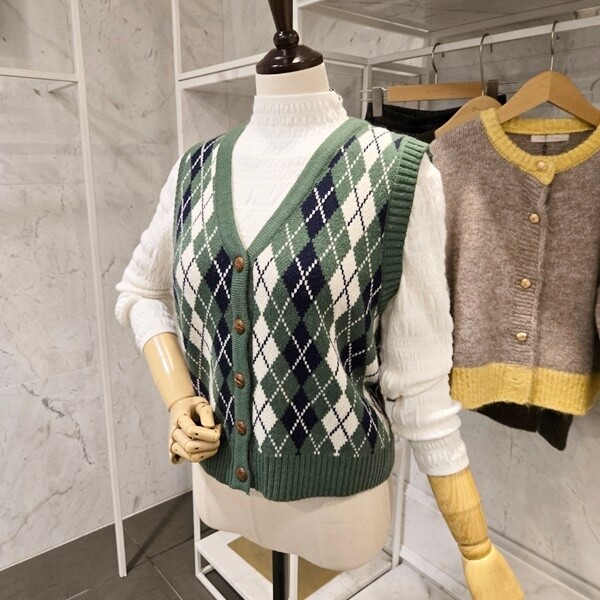 F5AVT500A_아가일 브이넥 니트조끼