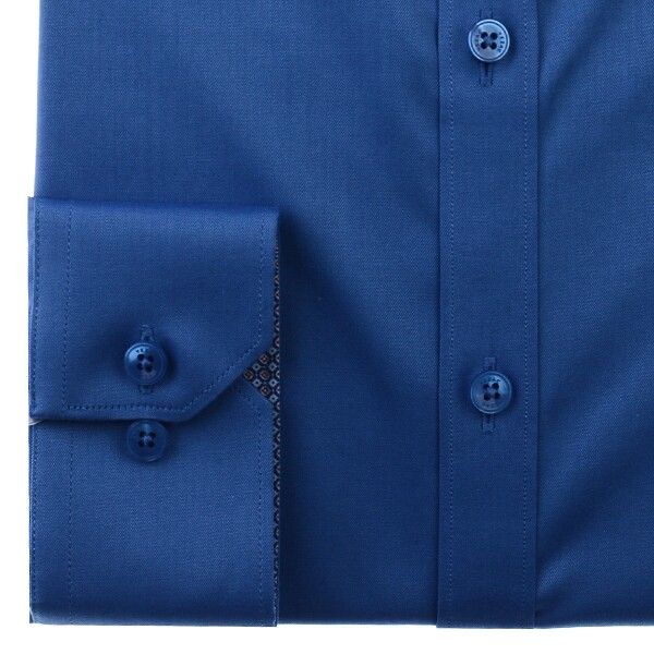 코튼스트레치 소재의 트윌 원단을 사용하여신축성이 있어 착용감이 편한 카라와 카우스 안쪽에배색 포인트를 준 슬림핏 긴소매