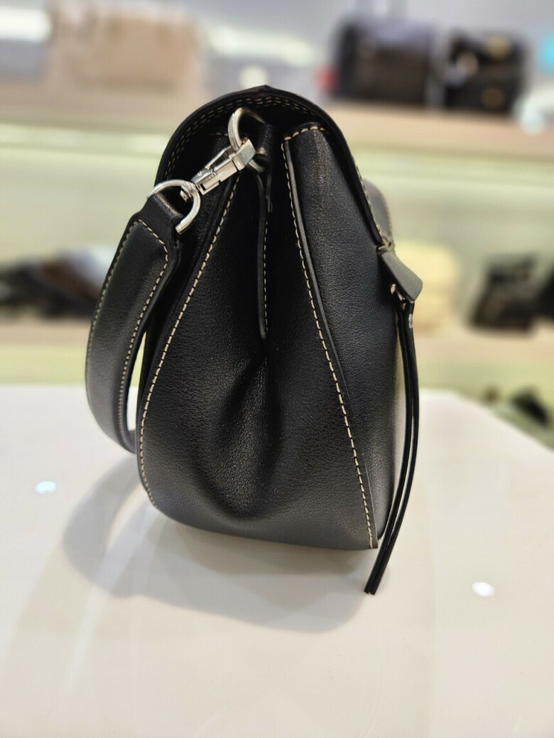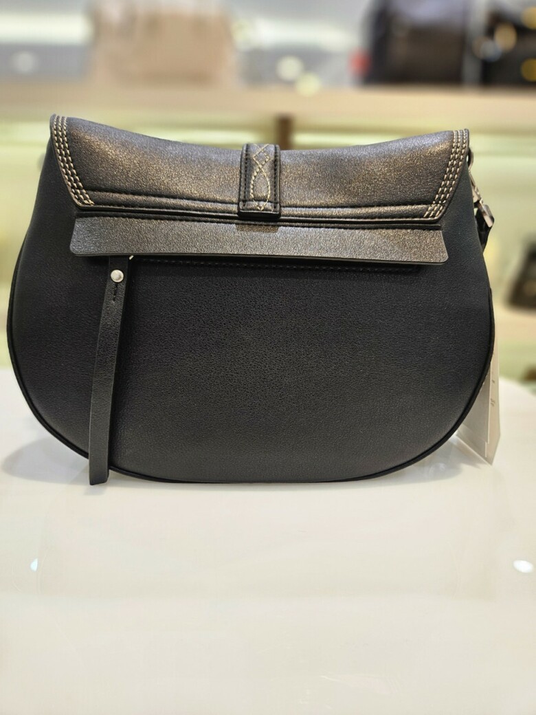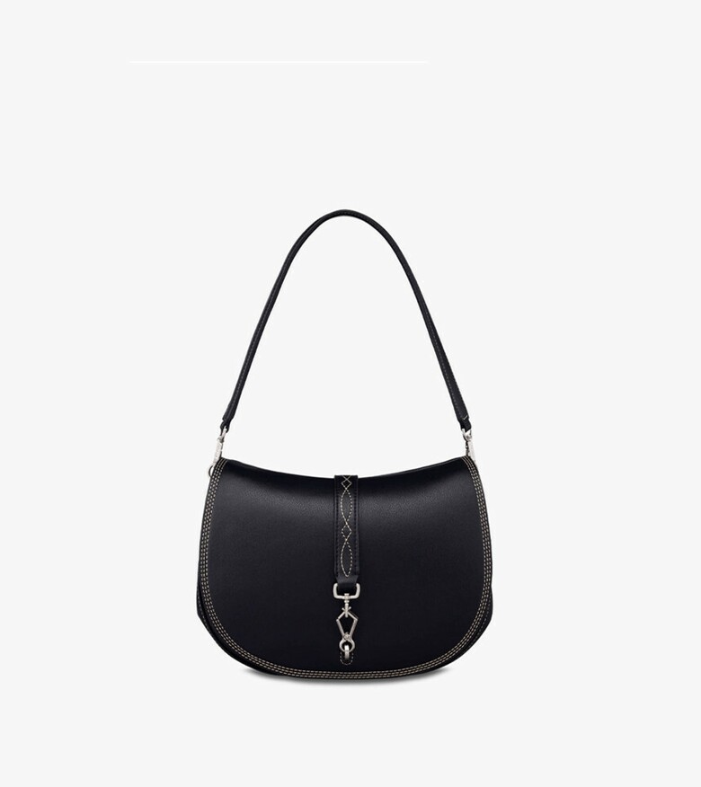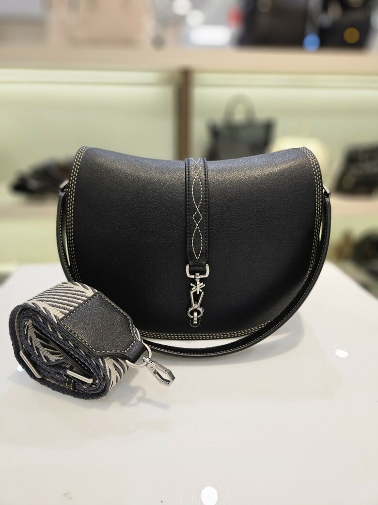 웨스턴 무드의 스티치와 전면의 고리 장식이 포인트인 새들백 입니다.