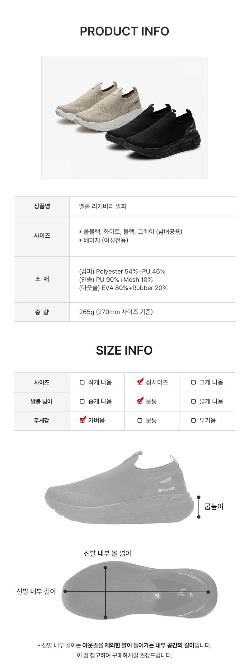밸롭 쿠션감좋은 리커버리 알파 니트워킹화 올블랙 BA5SWKU001AB