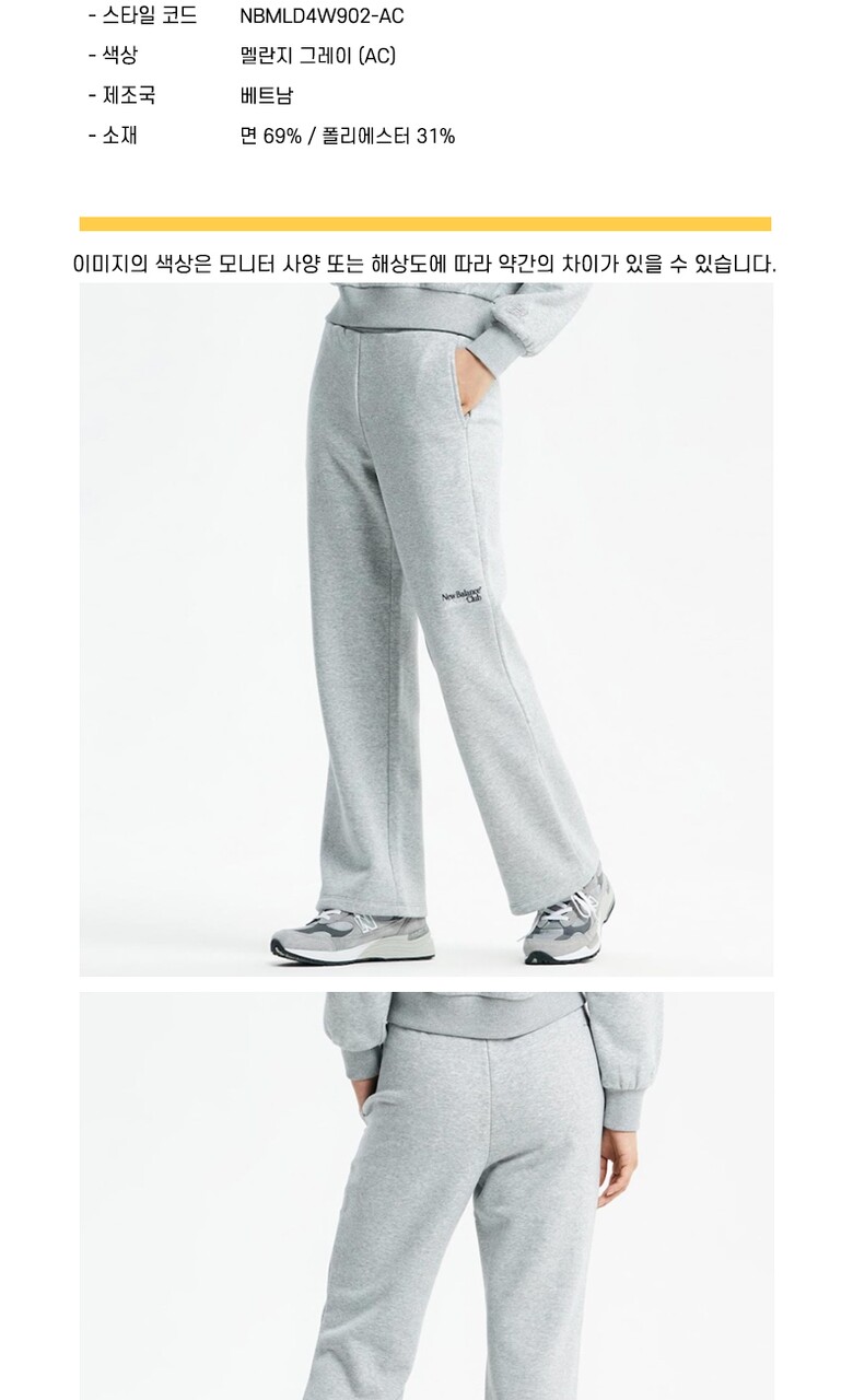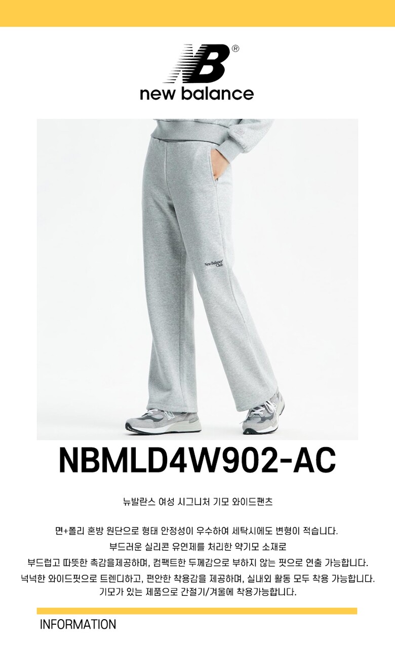 뉴발란스 여성 시그니처 기모 와이드 팬츠 NBMLD4W902-AC