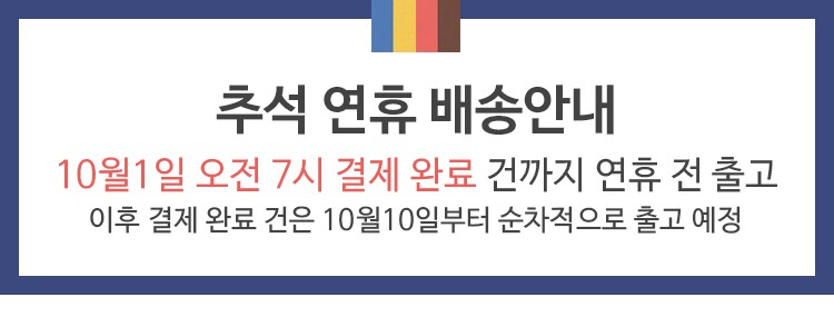 • 상품의 재고상황에 따라 배송 기일이 다소 지연 되거나, 품절로 인해 취소 될 수 있습니다.