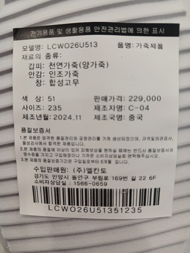 | 1. 제품 소재 (운동화인 경우에는 겉감, 안감을 구분하여 표시) | 상품상세참조 |