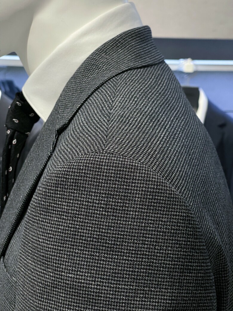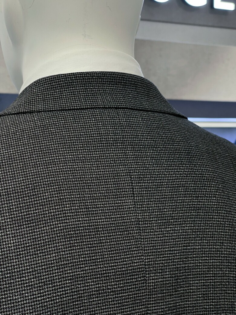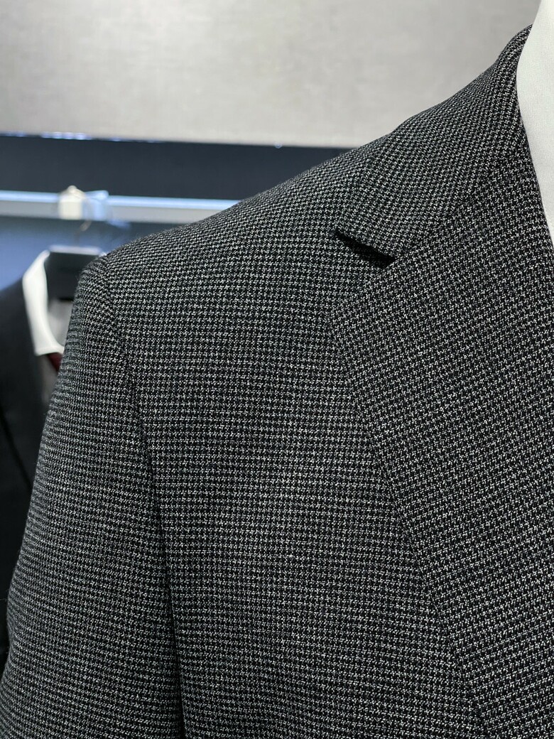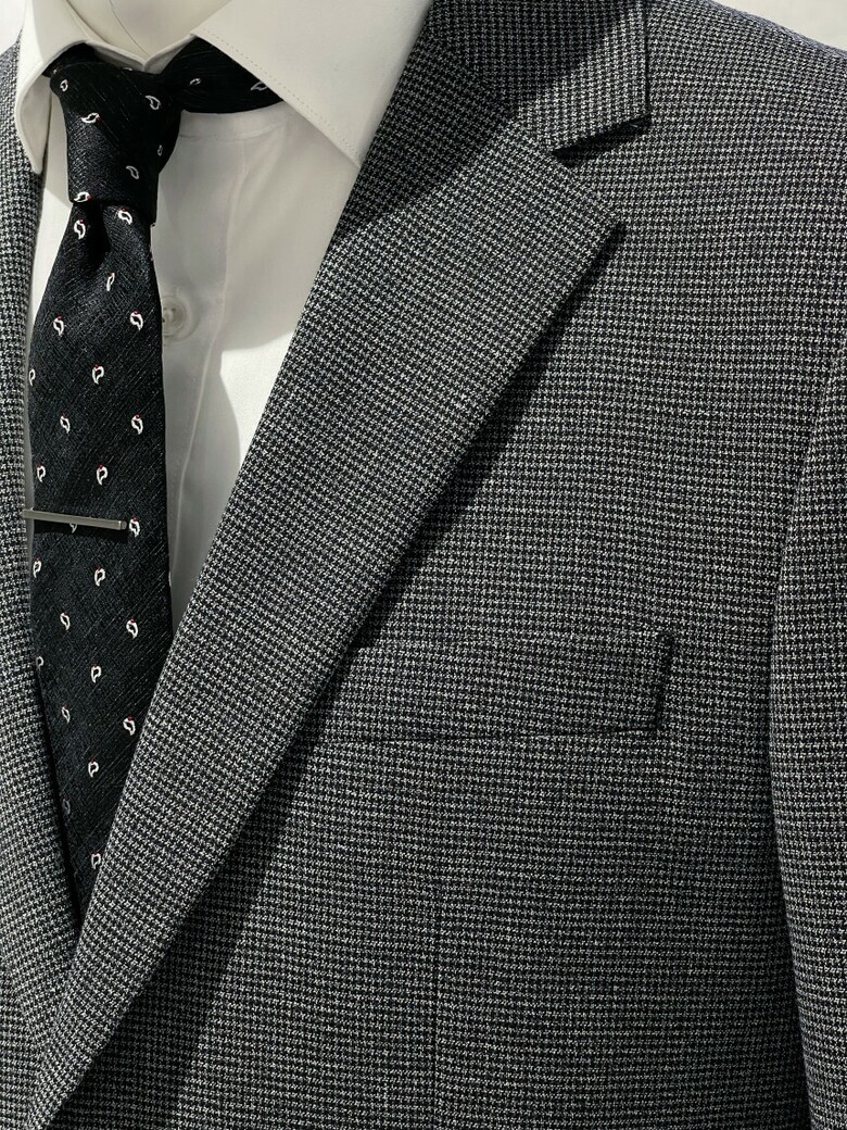세련된 차콜 마이크로 패턴의 정장입니다.