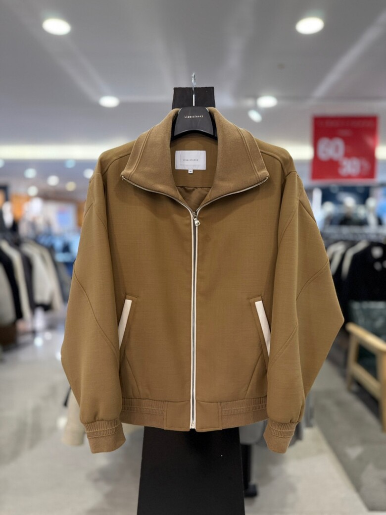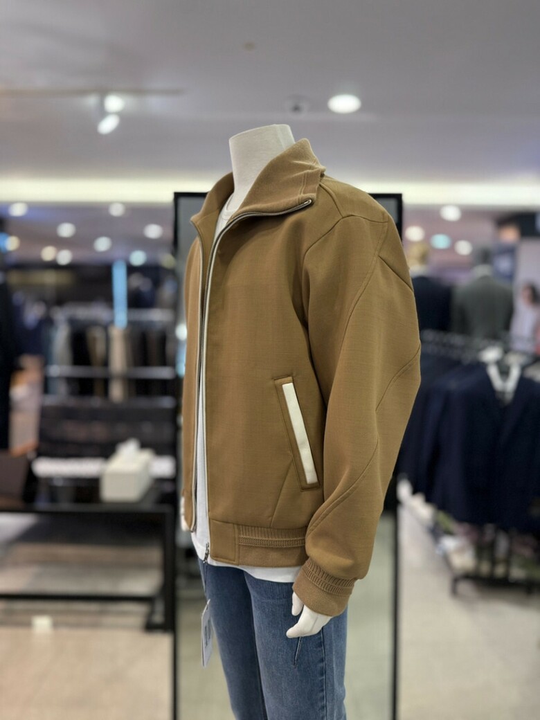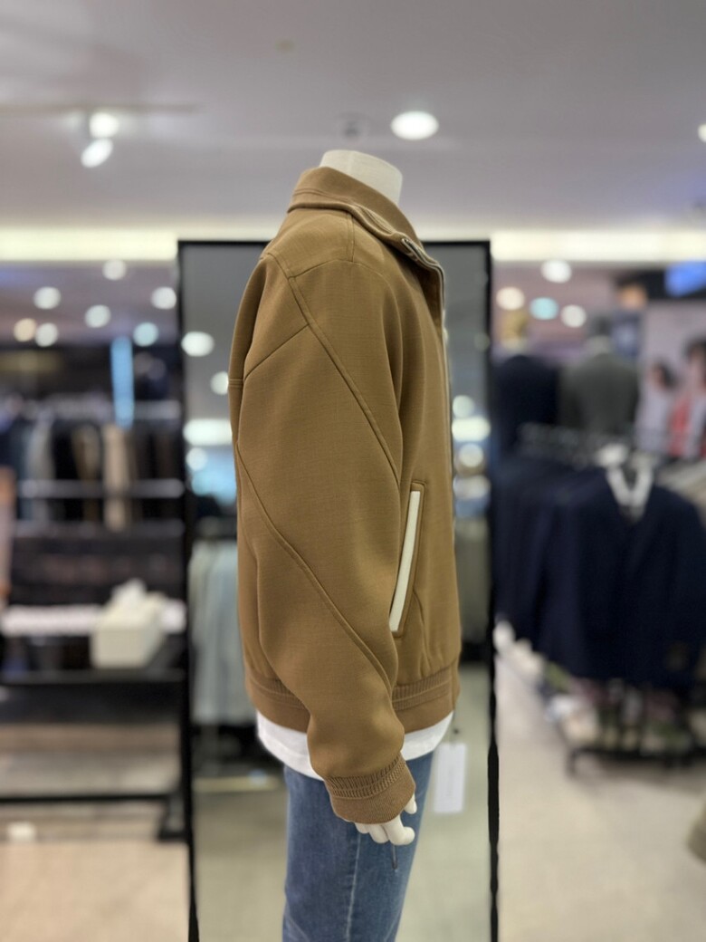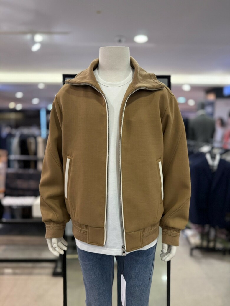 다크베이지 하이넥 레더배색 바시티 점퍼
