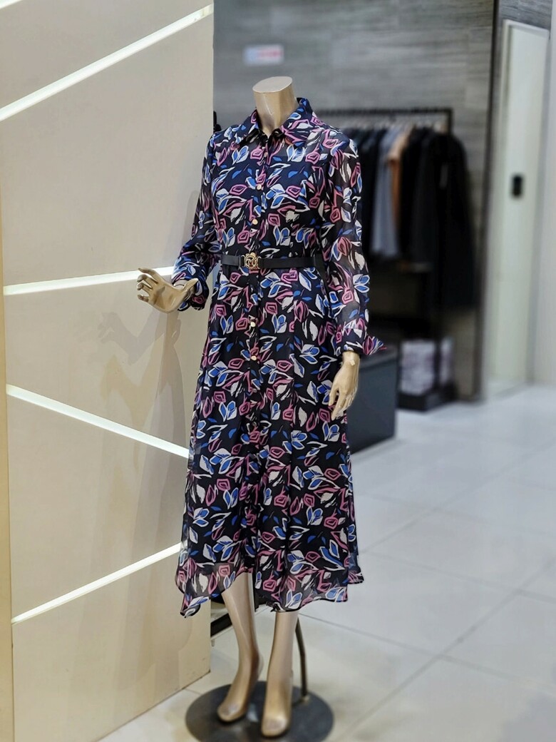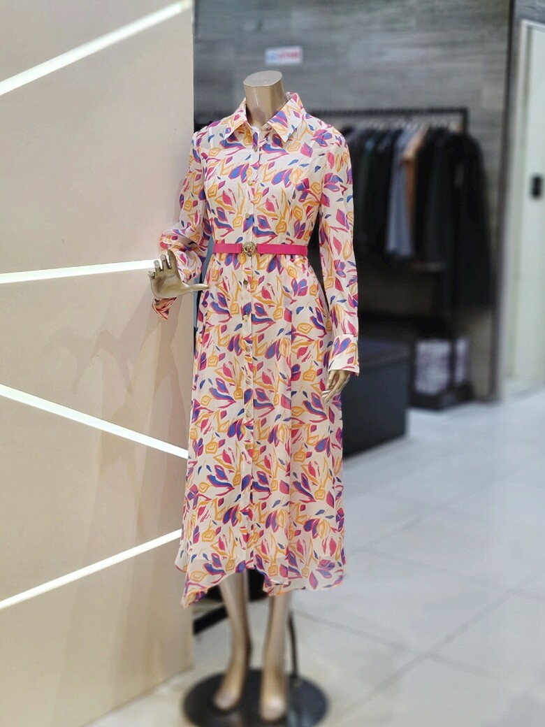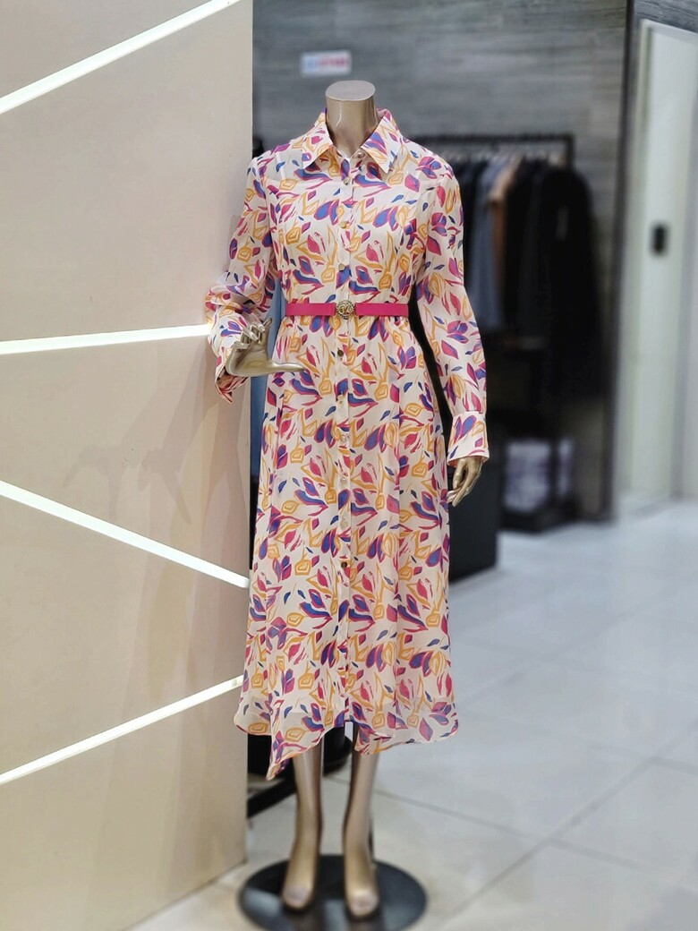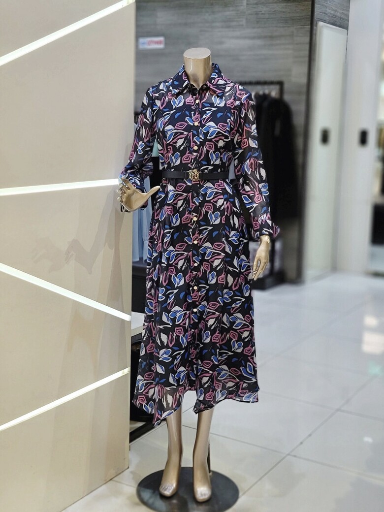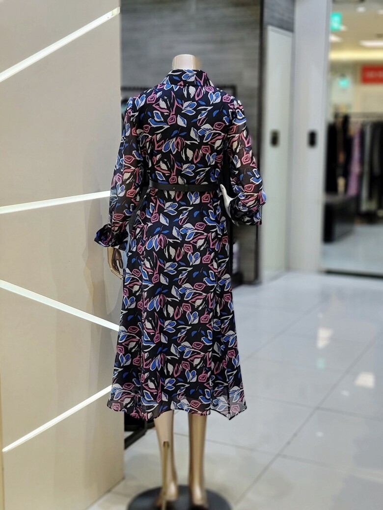 네크 맵시를 더하는 칼라 디자인에 플레어 실루엣이