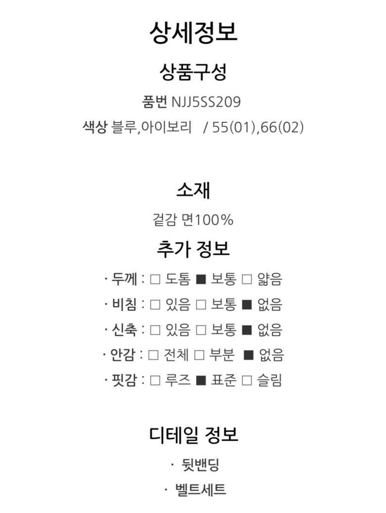 1. 제품 소재 (섬유의 조성 또는 혼용률을 백분율로 표시, 기능성인 경우 성적서 또는 허가서) 상품상세참조